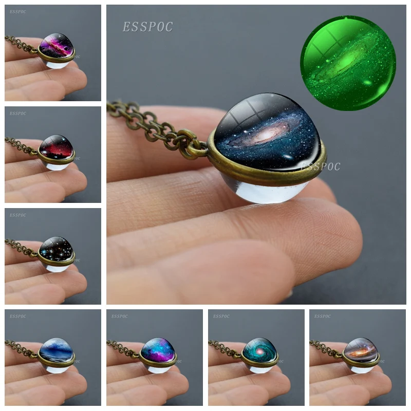 Ожерелье женское двухстороннее со стеклянным шаром, светящееся в темноте