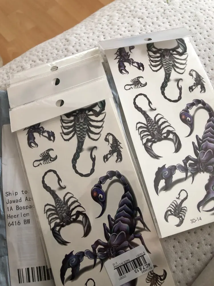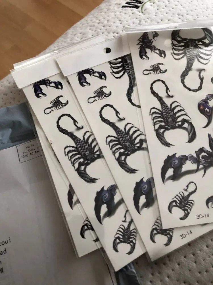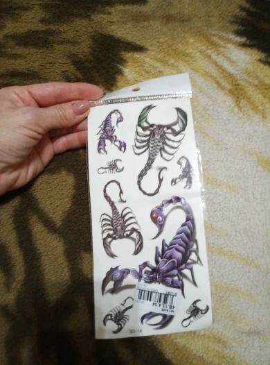 Всем доброго времени суток! Заказ делала 03.02.2021, в почтовом ящике его нашла 01.03.2021. Вполне быстрая доставка! Татушки понравились. Три из них монохромные, остальные с добавлением красного, зелёного и фиолетового (при заказе не обратила на это внимание).
