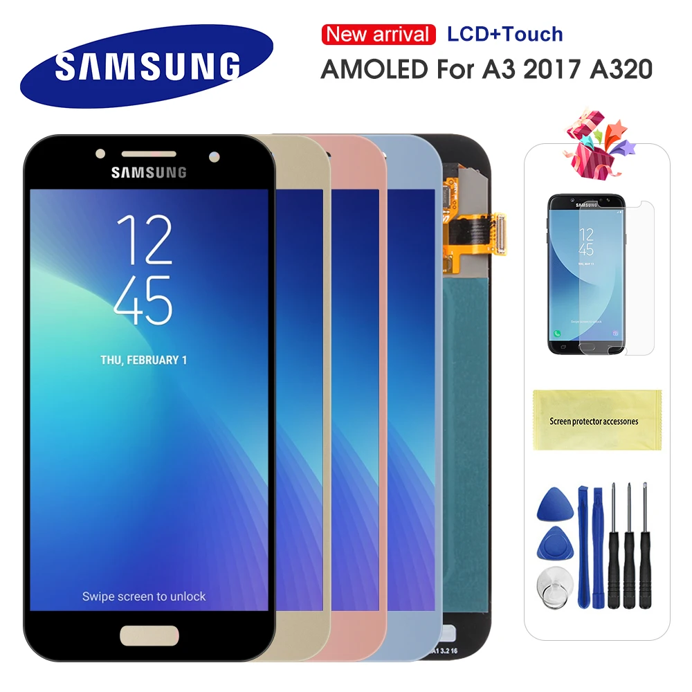 Оригинальный супер AMOLED для Samsung Galaxy A3 2017 A320 ЖК-дисплей сенсорный экран дигитайзер для Samsung A3 A320 2017 ЖК-экран