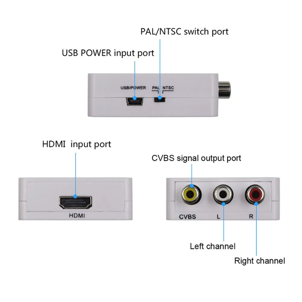 Мини-hdmi в AV преобразователь сигнала, который преобразует hdmi видео сигнал или аудио сигнал в AV (CVBS) композитный видео сигнал и FL / FR стерео аудио сигналы, в то время как Поддержка DVI системы sideline сигналы. Чтобы помочь пользователям изменить Высокое качество HDMI .. видео сигнала на обычный CVBS сигнал (стандартное разрешение 480i, 576i,), так что можно воспроизводить на ТВ, VHS видеомагнитофон, DVD рекордеры, И т. Д. Также поддерживает NTSC и PAL два ТВ формата, как показано ниже: