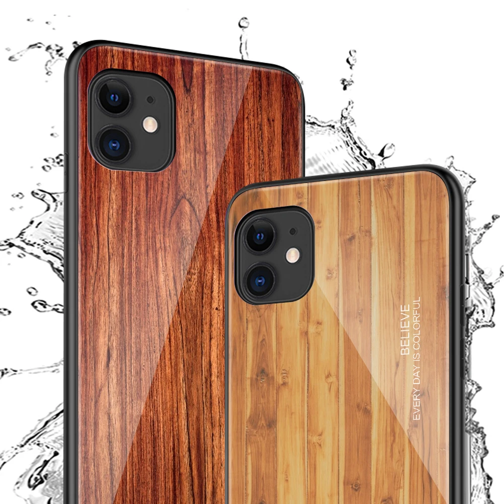 Роскошный чехол для телефона с текстурой древесины для iPhone 13 Pro Max XS Max XR X 13, стеклянный мини-чехол для iPhone XR 12 11 Pro Max 12Mini, чехол