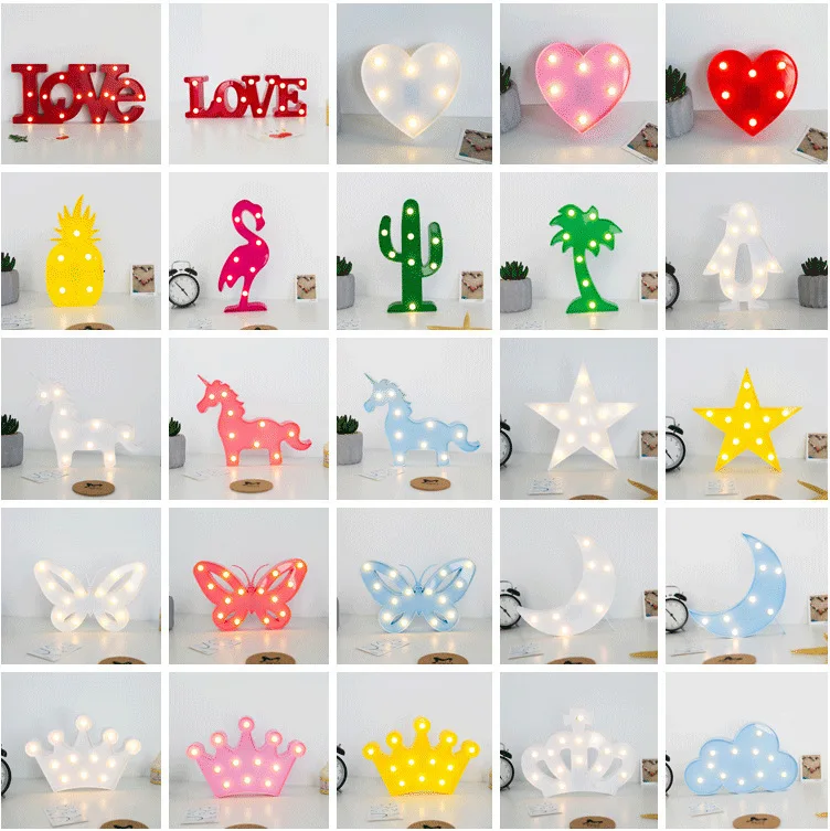 Большой мультяшный 3D светодиодный ночник, единорогФламингоКактусананасОблакозвездаракушкасердце, настольная лампа для декора детской спальни
