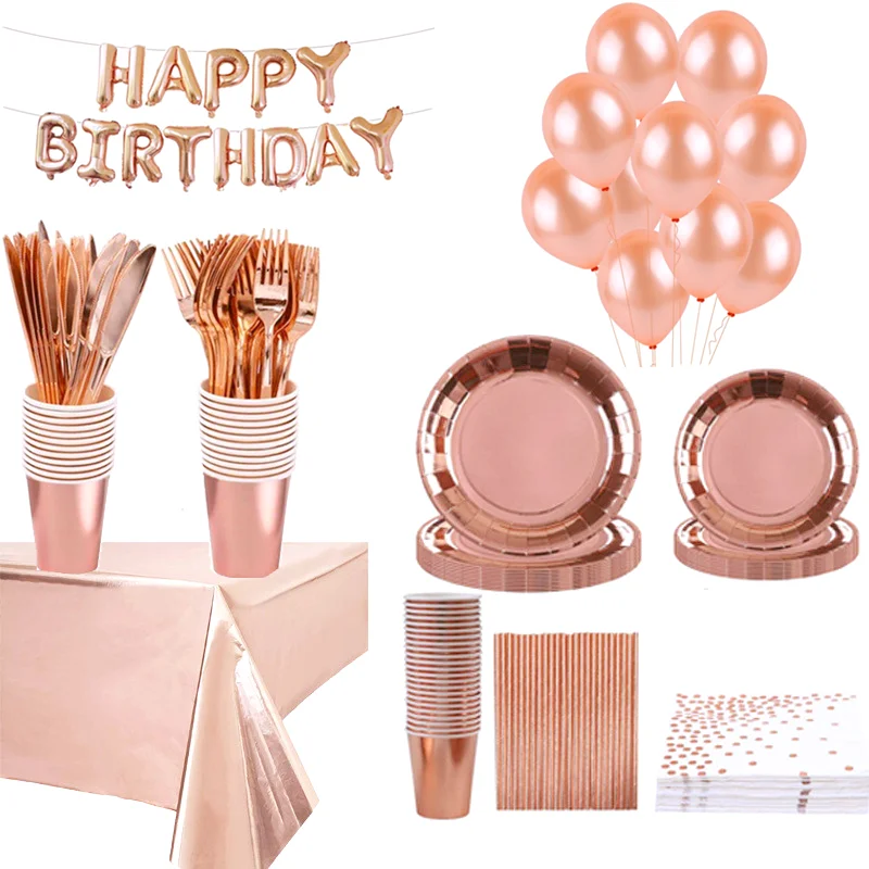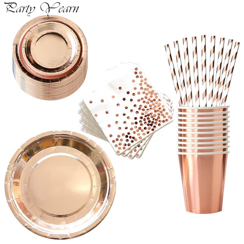 Розовое золото, одноразовая посуда, набор, Золотая соломинка, тарелка, бумажная чашка, салфетка для свадьбы, дня рождения, вечеринки, украшения для детского душа, принадлежности
