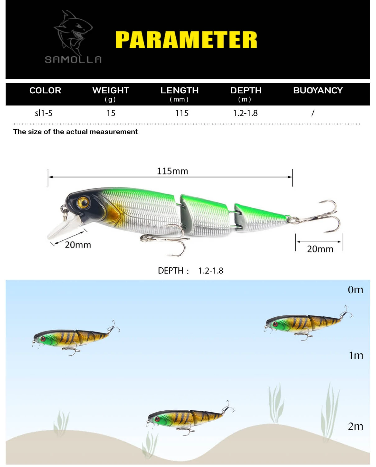 Плавающая приманка, рыболовная приманка, гольян, трехсекционная приманка, вес 11,5 см15 г, голографическая приманка для окуня, Джеркбейт, блесна для плавания, искусственные приманки
