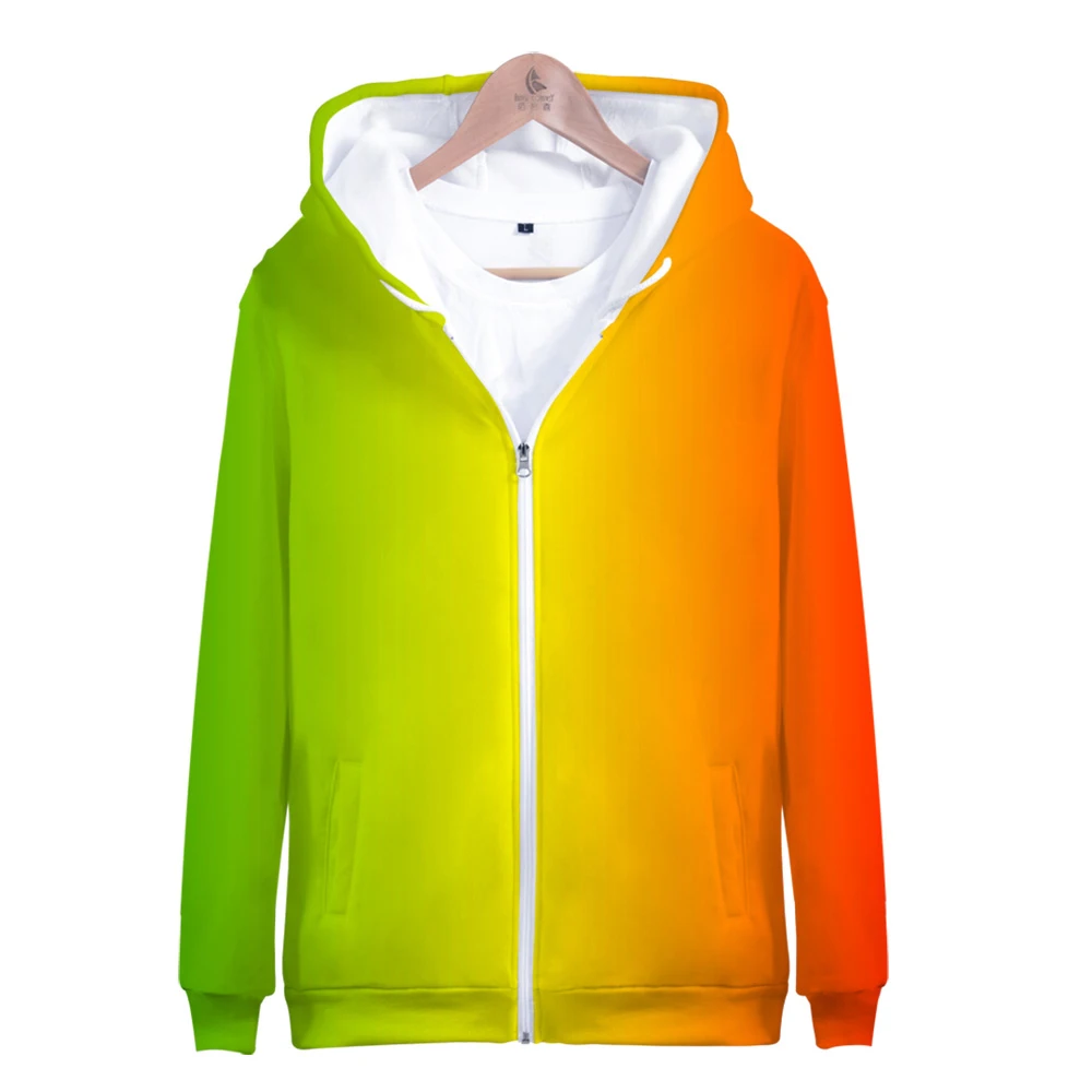 Лидер продаж неоновый толстовки с капюшоном на молнии для мужчин куртки кофты в стиле хип-хоп Красочные детская толстовка с капюшоном с принтом 3D сплошной цвет неоновый с капюшоном пальто с радужным принтом