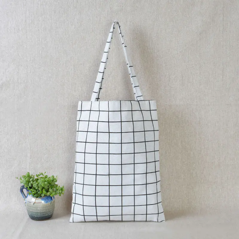 Повседневные клетчатые сумки для покупок из хлопка и льна для женщи...