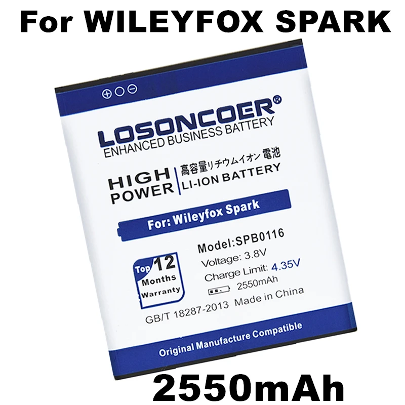 Сменные батареи LOSONCOER SPB0116 2550 мАч для Wileyfox Spark Spark + аккумулятор для смартфона + Быстрая доставка