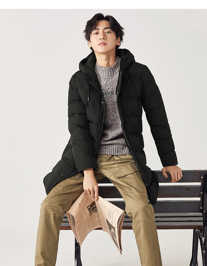 Мужская длинная хлопковая куртка SEMIR, черная зимняя куртка с капюшоном, теплая парка для взрослых, 2020