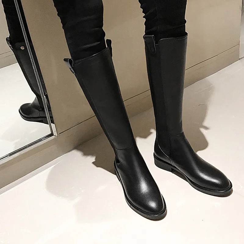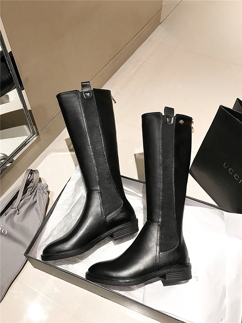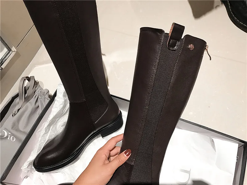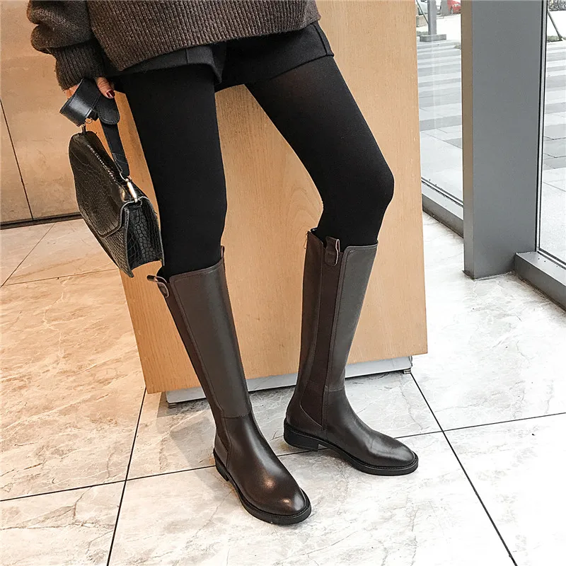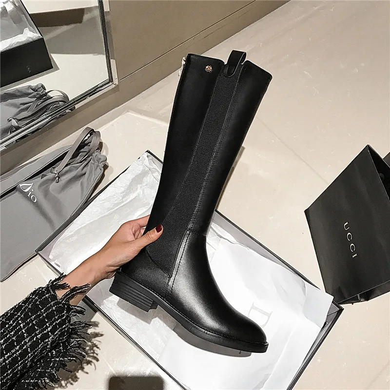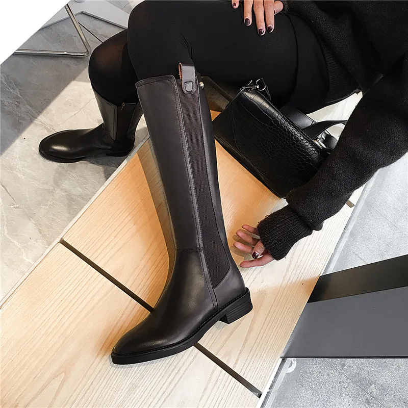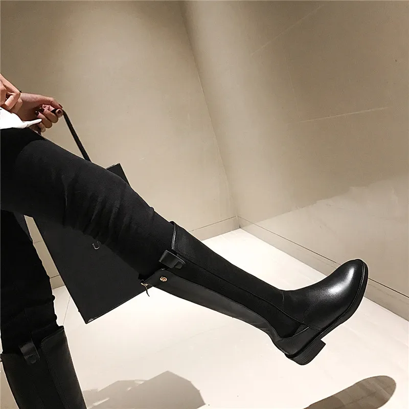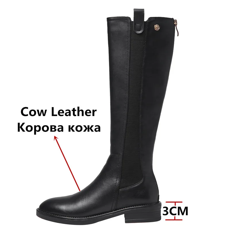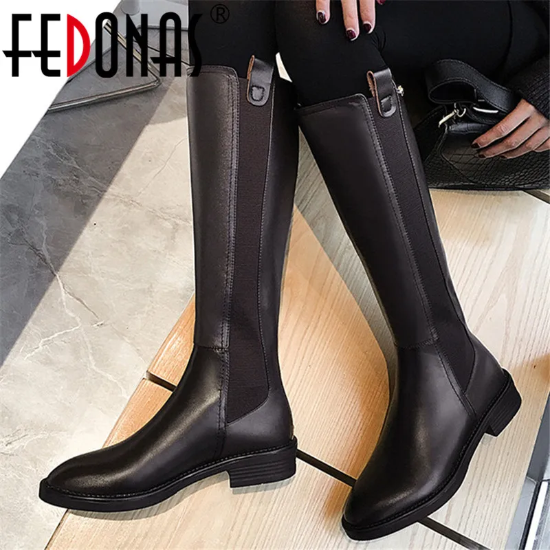 Женские сапоги до колена FEDONAS, теплые сапоги из натуральной кожи на молнии сзади, сапоги для верховой езды, с круглым носком, на зиму