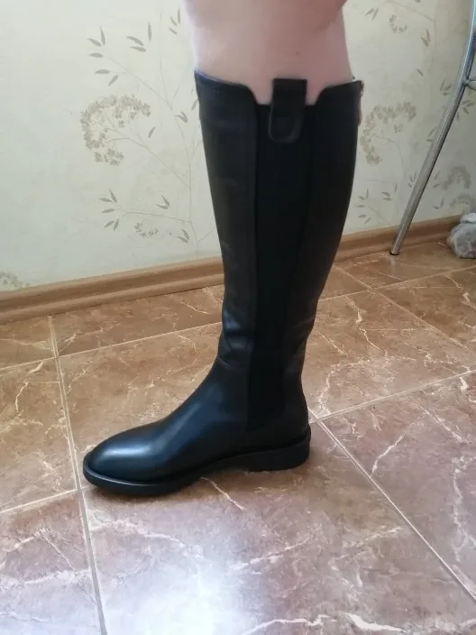 Доставка месяц. Упакованы тщательно. Но голенища сапог сильно согнуты и помялись. Хотя быстро выпрямились. На стопу 23 см. подошли, только только, но не жмут. Если хотите носить на носок, то надо брать больше. Не уверена, что полностью кожаные. Хотя мягкие. Внутри тонкий плюш или меховушка какая то. Смотрятся на ноге довольно симпатично, но в целом бюджетно. Не понимаю, зачем на молнии бегунок золотого цвета, это мне не нравится. До минус 3 ноге точно тепло, что потом пока не знаю. В целом думала что будут лучше. Молнии немного задевают внизу за полоску кожи вшитую рядом с молнией и надо приловчиться их застёгивать.