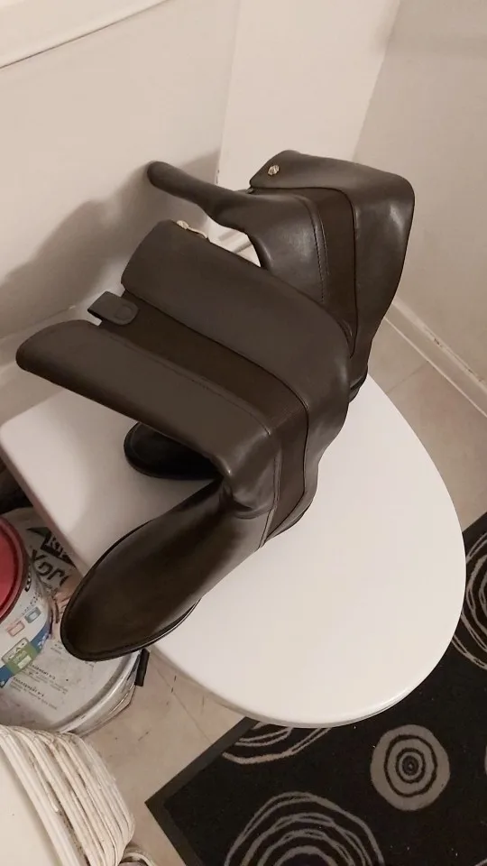 ריח נוראייייי!!!!! המגפיים עמדו בחוץ כמה ימים והריח לא עבר... הזמנתי מידה אחת יותר ועדיין מאוד צמוד אי אפשר לזוז איתם!! איכות לא משהו בכלל.. הריצ'רץ' והפרח המוזהבים עושים את המגף זול. לא נראה כמו עור אמיתי... חבל על הכסף כי הם לא שווים את המחיר הזה! המשלוח לקח נצח!!! לפחות חודשיים וחצי חיכיתי, כבר החורף נגמר....