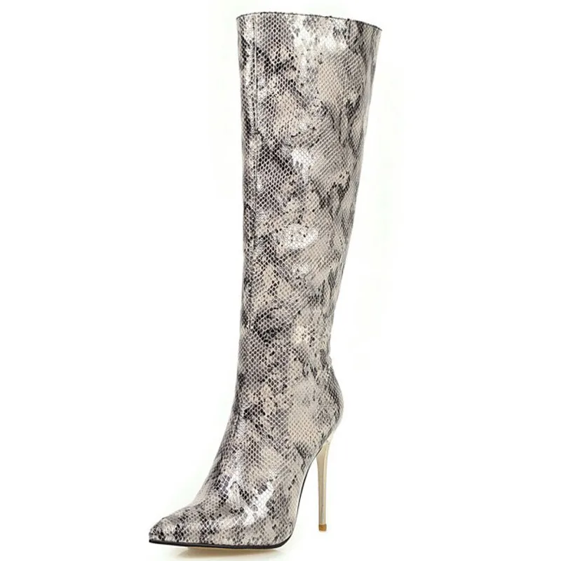 Змеиная кожа, Леопардовый принт, с высоким голенищем пикантная обувь; Женская обувь из искусственного материала (ПУ); Женские туфли на высоком каблуке каблук осень-зима, на платформе, высокие сапоги, кожа, в ковбойском стиле, женская обувь WSH3461