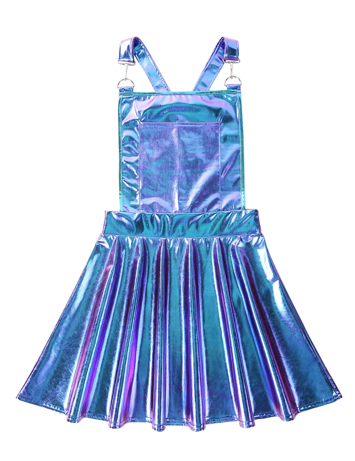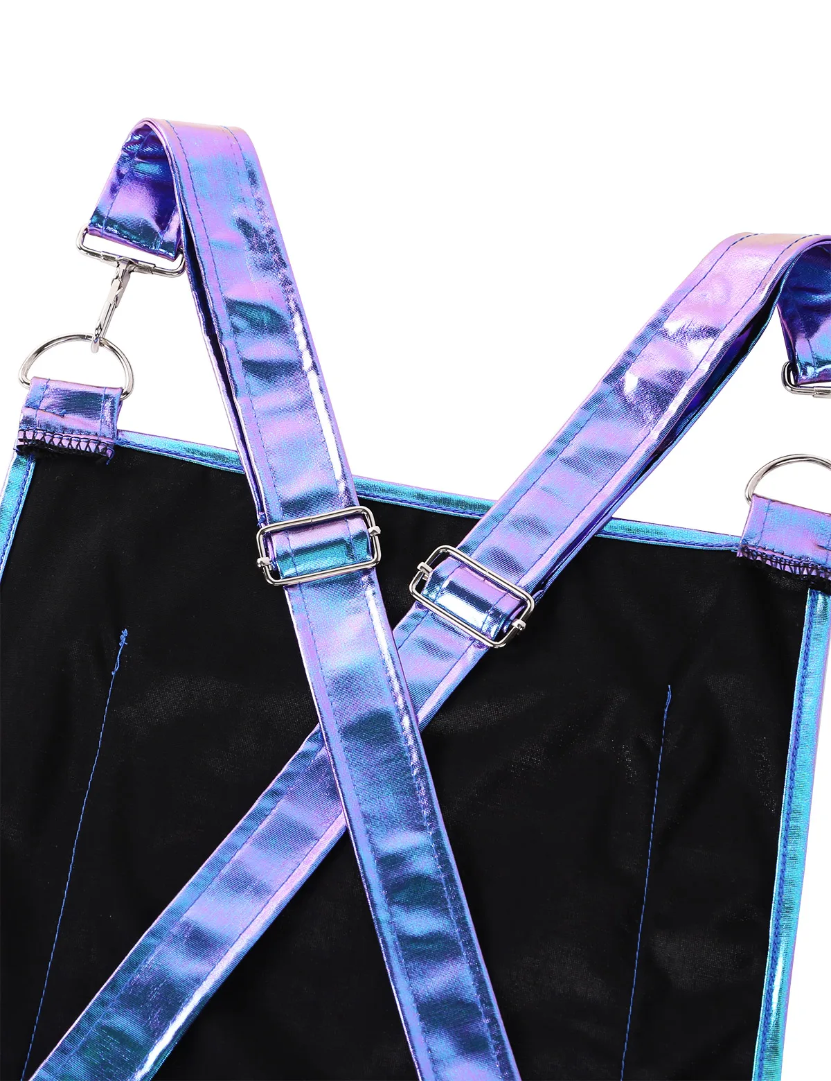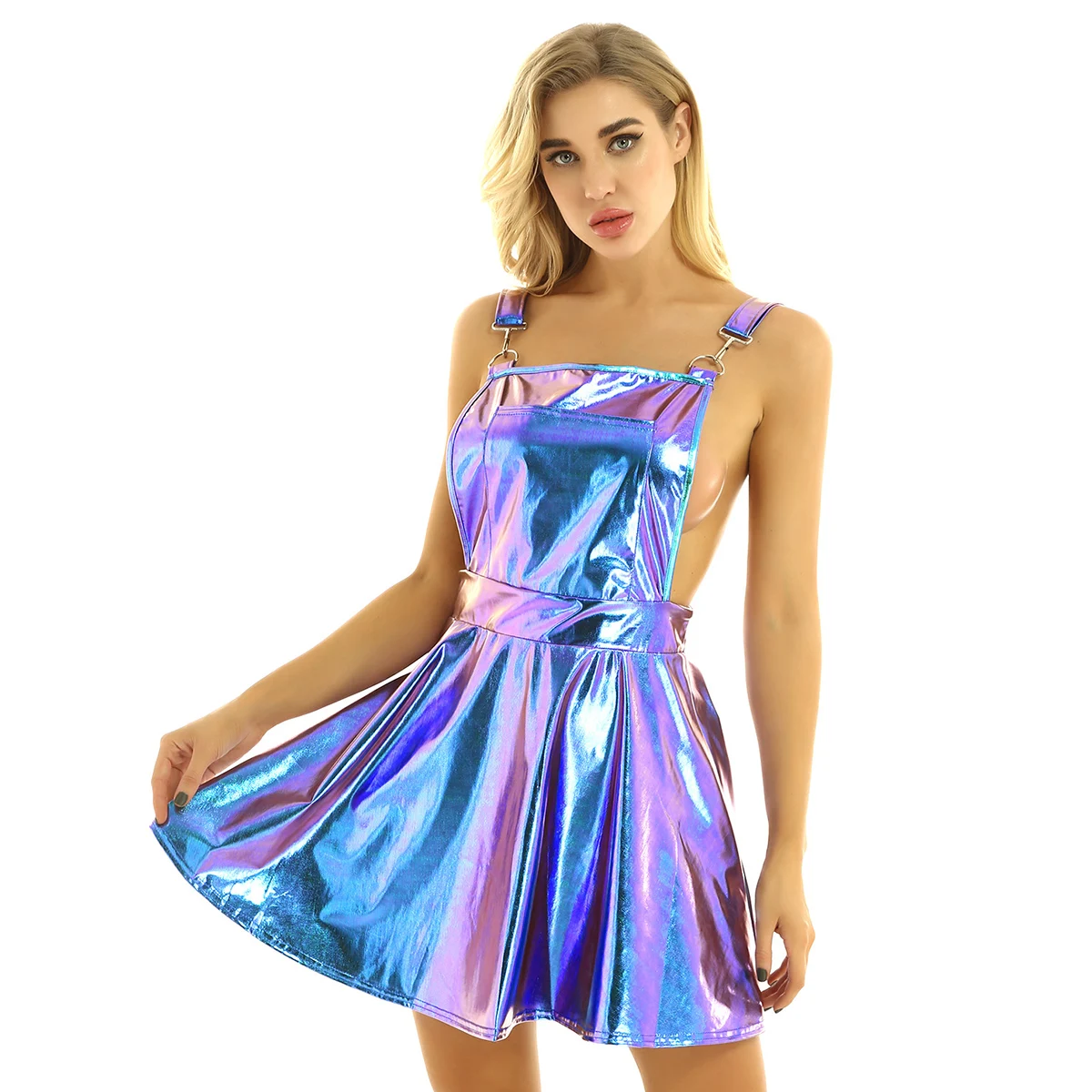 Женский Блестящий Полукомбинезон с металлическим нагрудником, сарафан, платье для выпускного вечера, Рейв, ночной клуб, певица, танцевальная одежда, платья мини подвязки