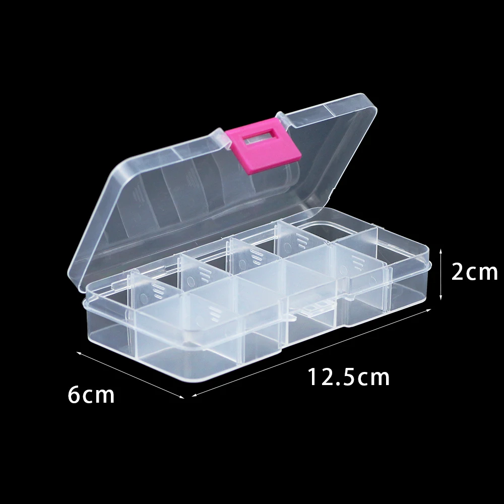 HGKLBB пластиковая коробка для хранения с 10 регулируемыми слотами, прозрачный чехол для инструментов, шкатулка для украшений, серьги, кольца, подарочные коробки