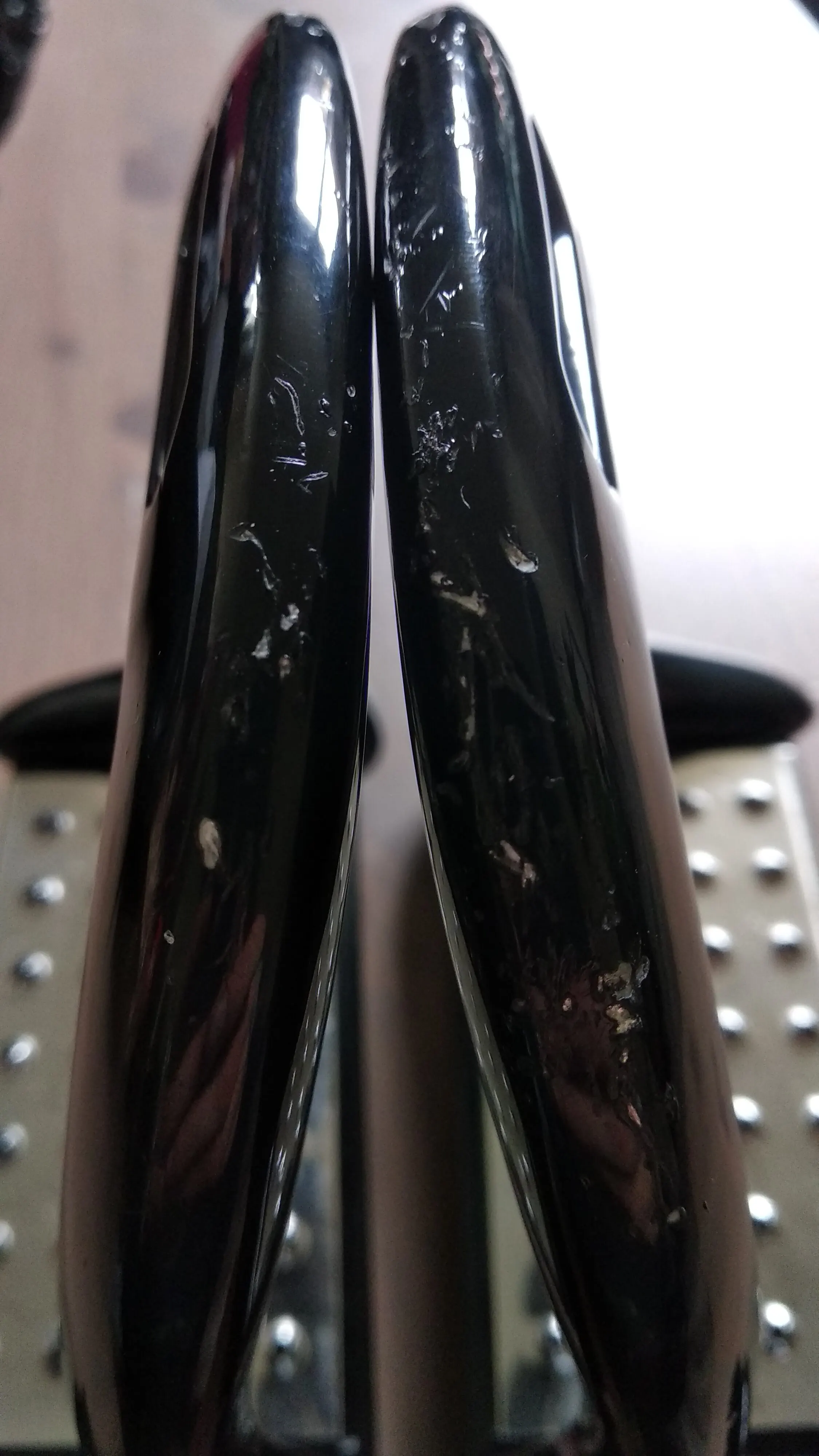 Пришли пробитые, слезла краска и откололись вставки бренда, сами удобные, но состояние как будто использовали не один год