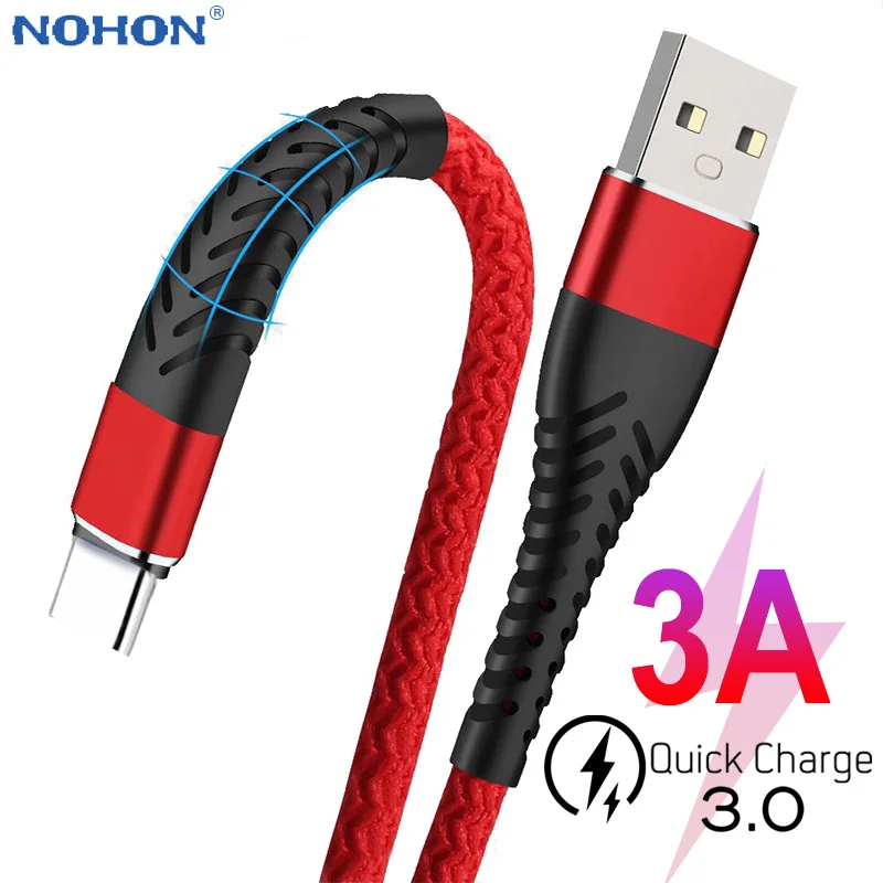Зарядный кабель USB Type C для Samsung S9, S10, Xiaomi mi 9, Note 7, 8, 10, K20 Pro, USBC, TypeC, провод для быстрой зарядки телефона, 1 м, 2 м, 3 м