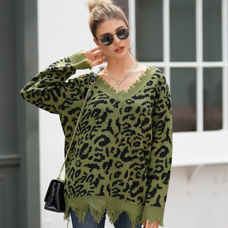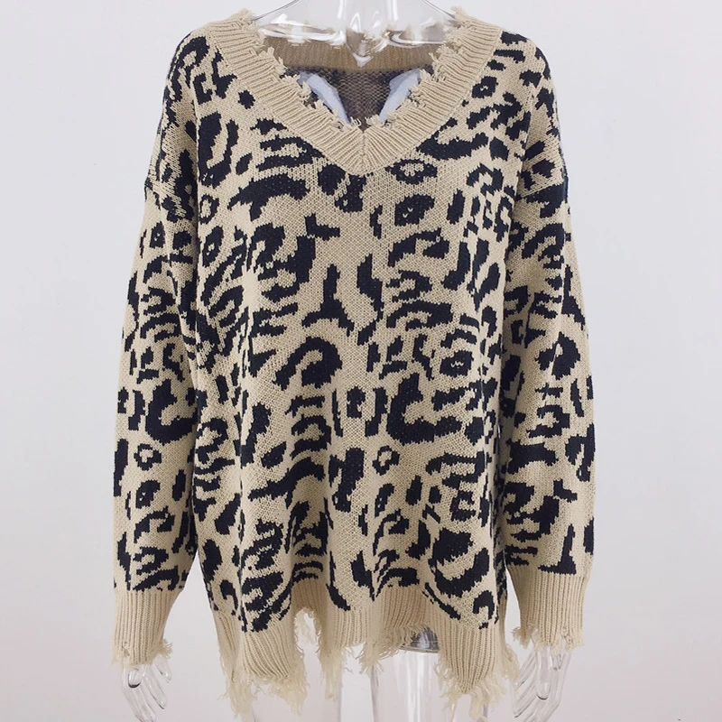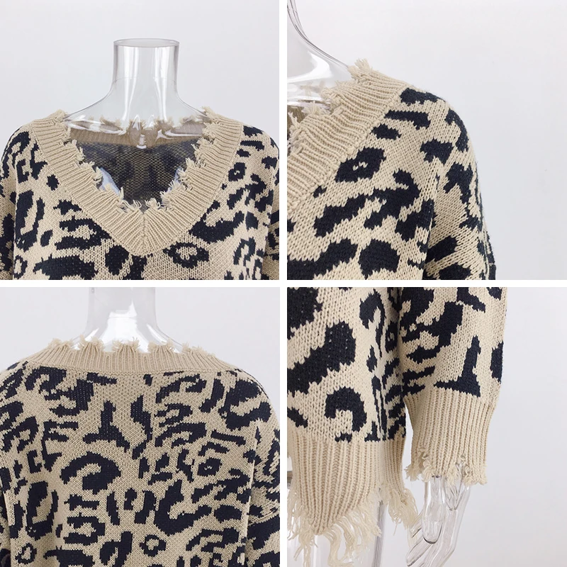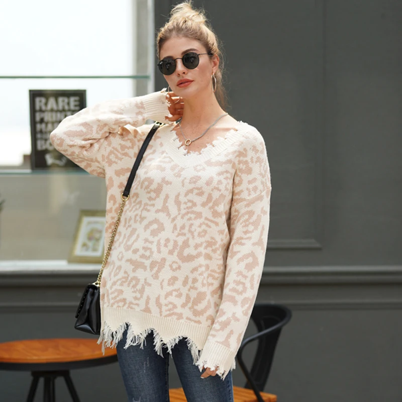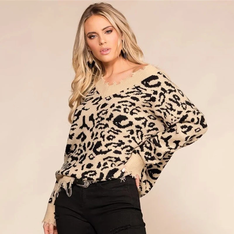 Женский трикотажный свитер Siskakia, асимметричный пуловер с леопардовым принтом, с V-образным вырезом и длинным рукавом, одежда для осени, 2019