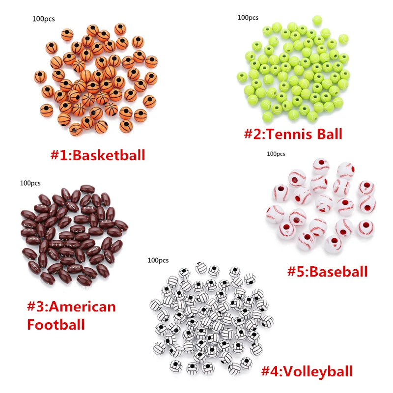 50 шт., спортивные бусины для баскетбола, тенниса, волейбола, бейсб...