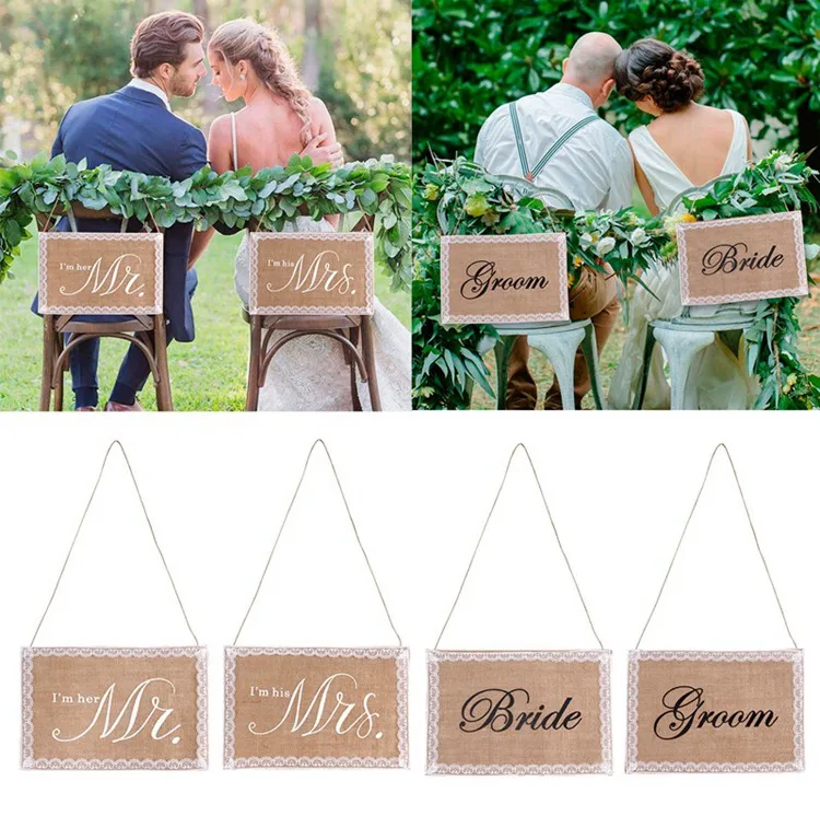 Mr Mrs стул с джутовым баннером баннер винтажная деревенская Свадьб...