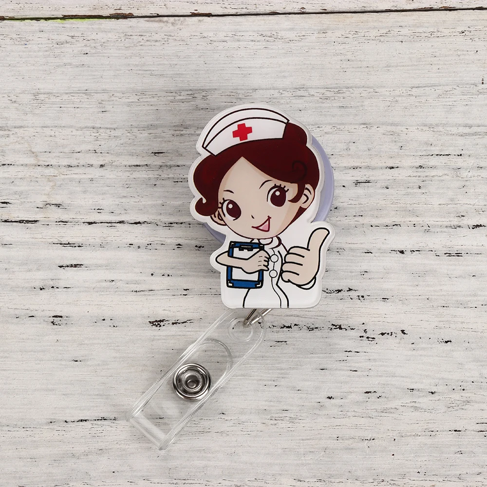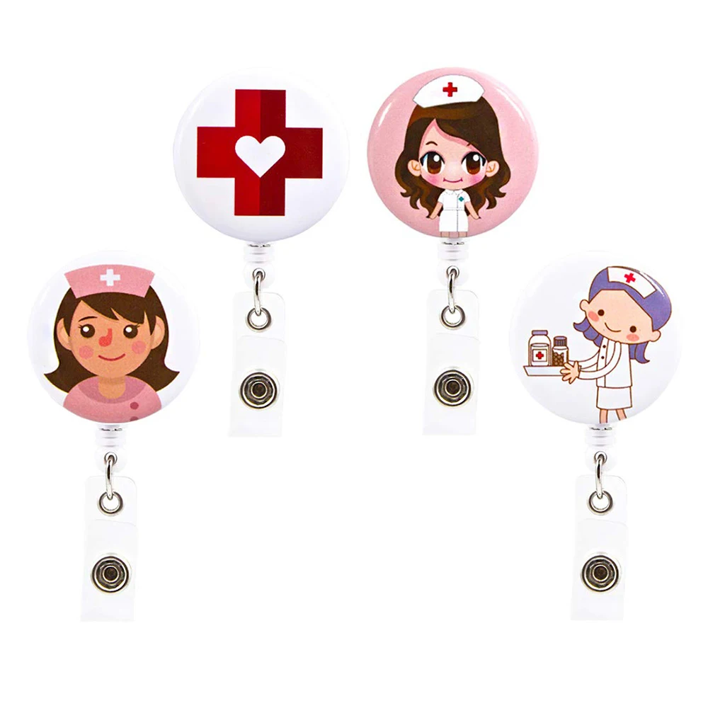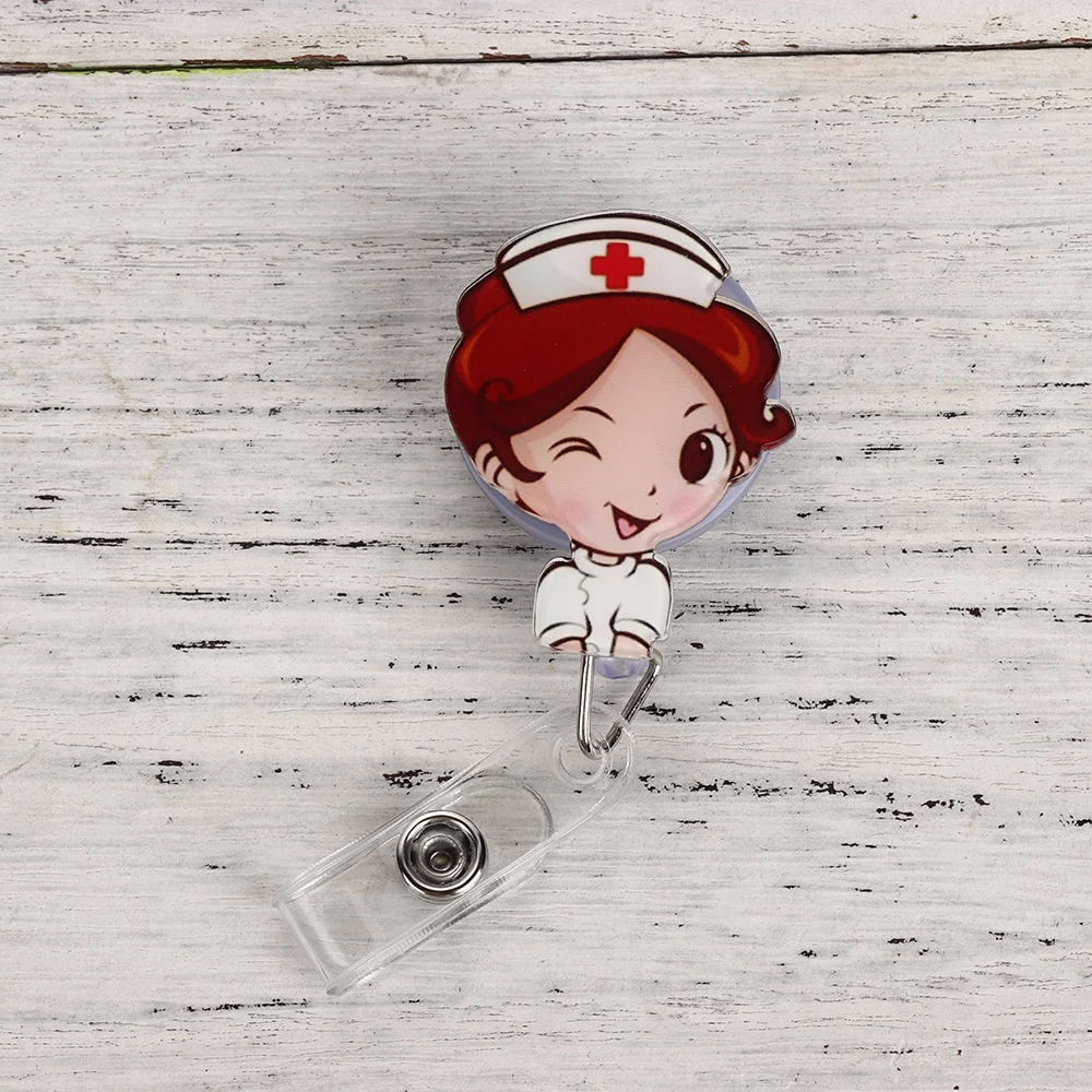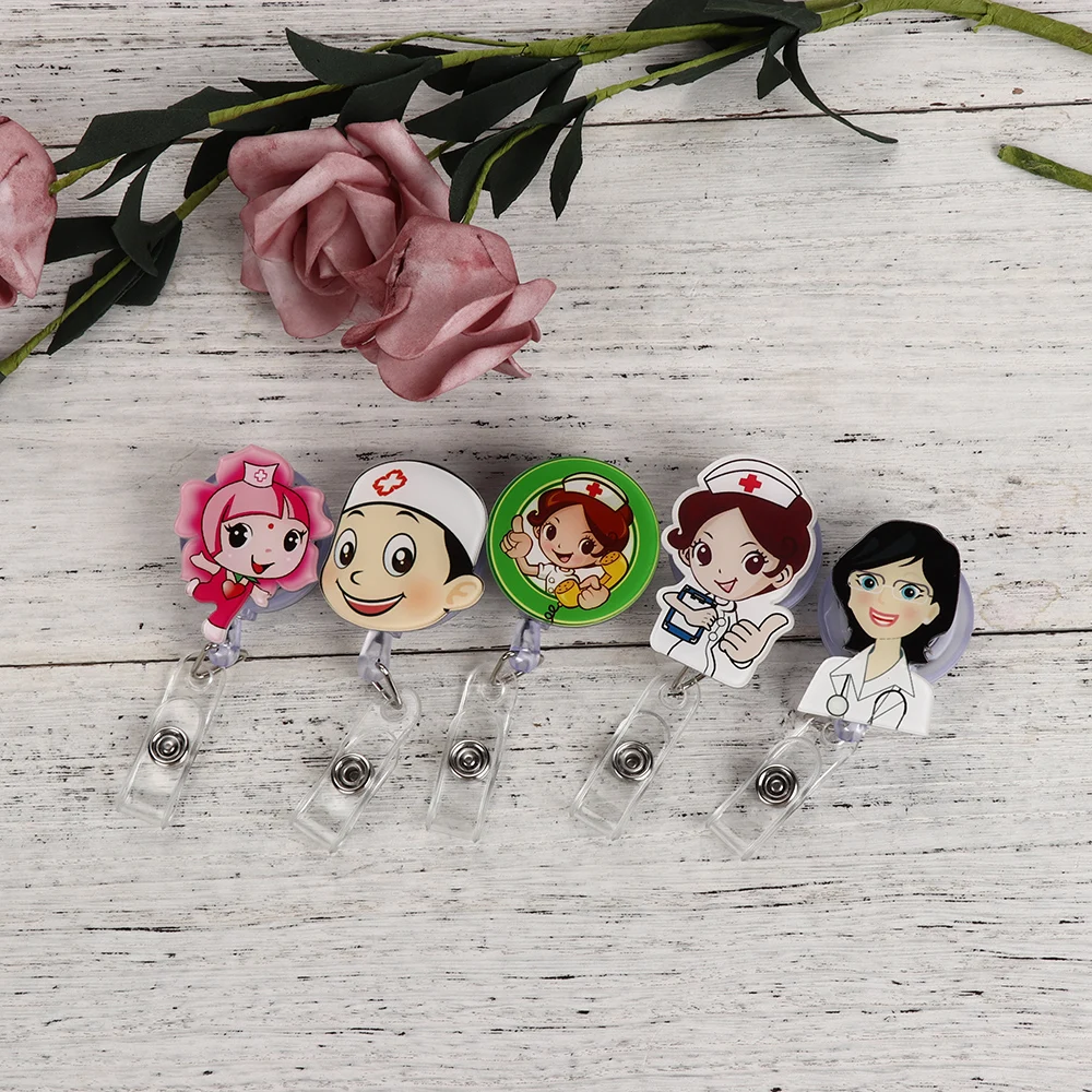 Милый мультяшный мини выдвижной значок, 1 шт., зажим для медсестры, ремешок для ID, имя, карта, держатель, зажим для студенческого узора, значок медсестры, зажим