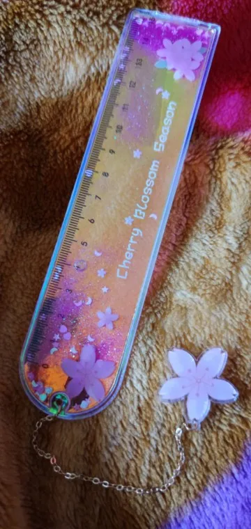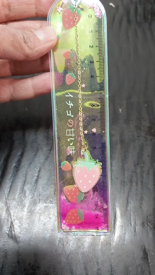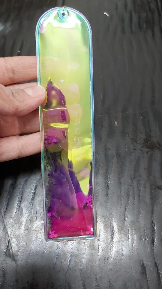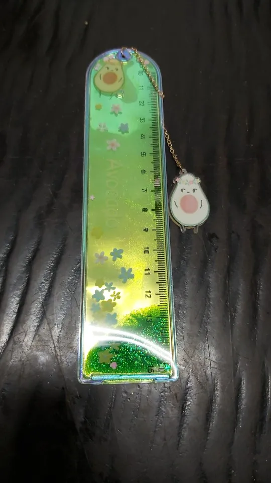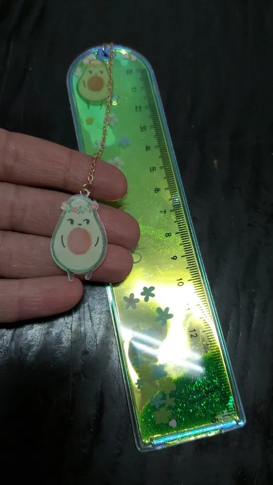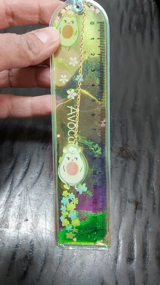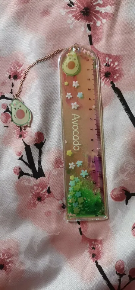 Купил это довольно некоторое время назад, написав это сейчас. Мне очень нравится этот товар, он имеет желеобразную текстуру и внутри есть вода с блестками, которая движется. Я бы сказал, что это лучше как отметка книги, чем линейка, но мне это действительно нравится. У меня не было брелока, но я не против.