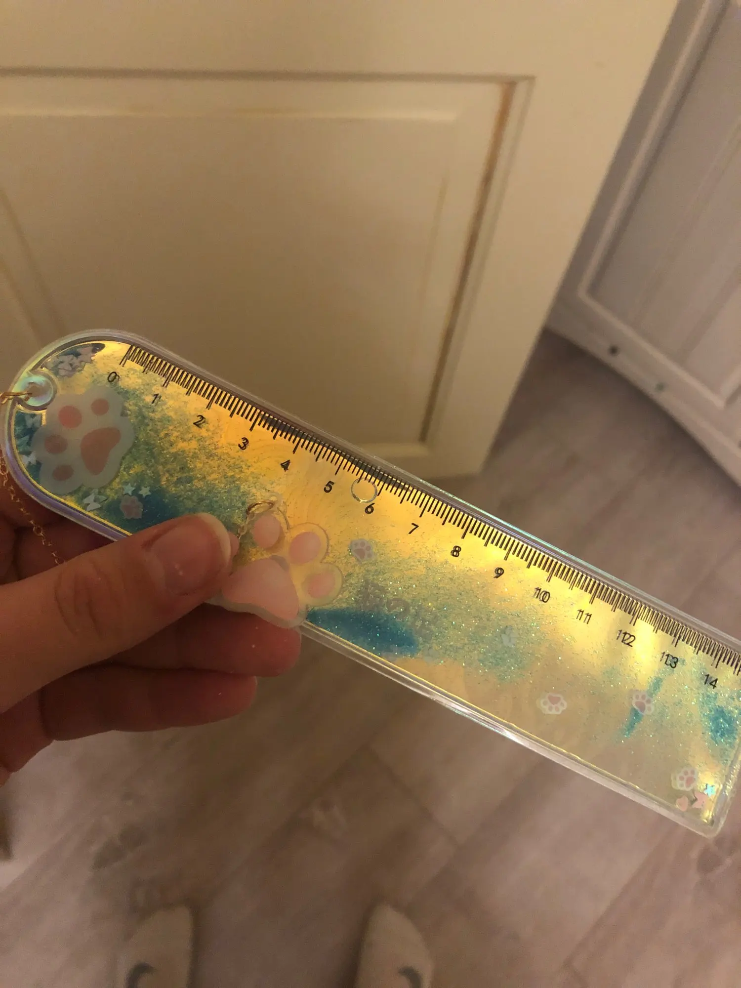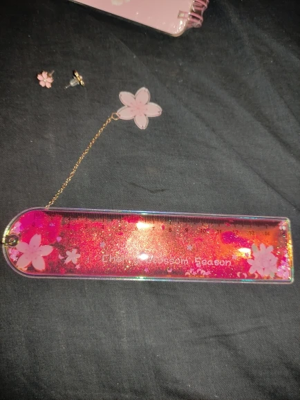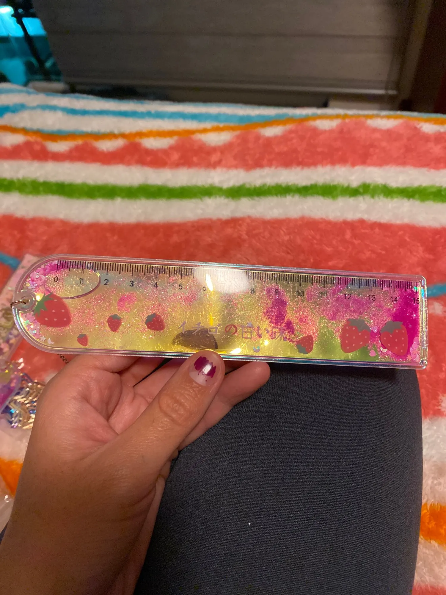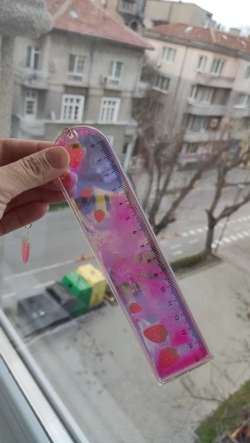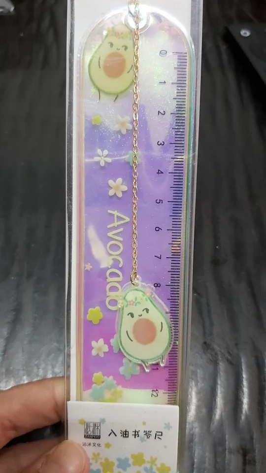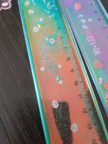 Купил это довольно некоторое время назад, написав это сейчас. Мне очень нравится этот товар, он имеет желеобразную текстуру и внутри есть вода с блестками, которая движется. Я бы сказал, что это лучше как отметка книги, чем линейка, но мне это действительно нравится. У меня не было брелока, но я не против.