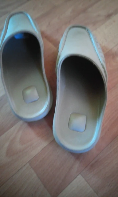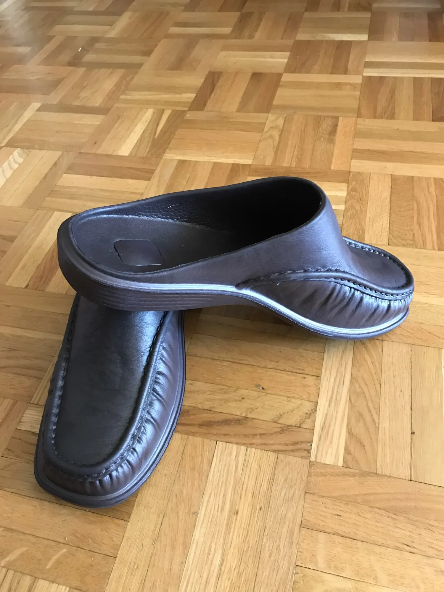 Тапочки полностью из пластика/резины. Без кожи. Ходите хорошо и красиво
