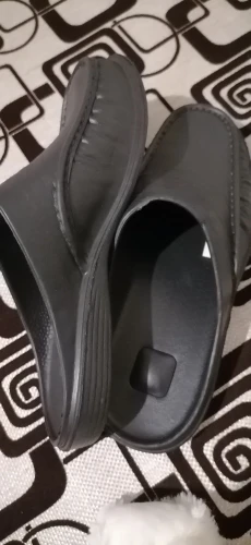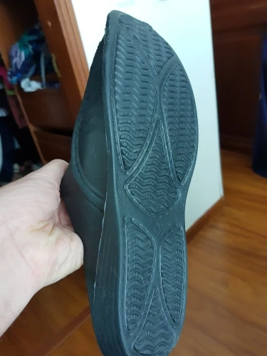 Размер впритык на ногу 29,5см подошёл (41+). Материал как у садовых калош, пахуучий. Нога не дышит совсем. Жарко по квартире ходить. Для дачи в межсезонье пойдёт, но подошва тонковата.