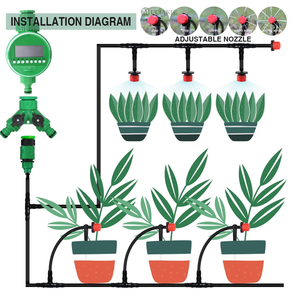 Система автоматического полива сада MUCIAKIE, регулируемая система капельного орошения цифровой водный таймер, контроллер 47 мм