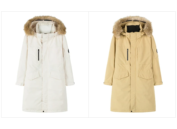 суперский пуховик, наполнение пух перо, внешняя ткань плотная водоотлакивающая, приятного горчичного цвета. гигиенический воротник из флиса, липучки на рукаве регулируется под диаметр руки, внутренняя манжета против снега, глубокие карманы, воротник из енота. фабричное качество, как и у всех вещей из этого магазина на рост 179 длина ровно по колено, взяла мужскую модель для себя, потому что нет надписей во всю спину в отличии от женской модели.