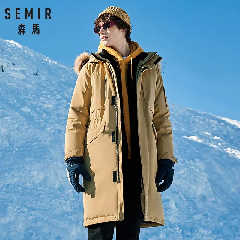 Мужской пуховик с меховым воротником и капюшоном SEMIR, зимний тренд, 2020