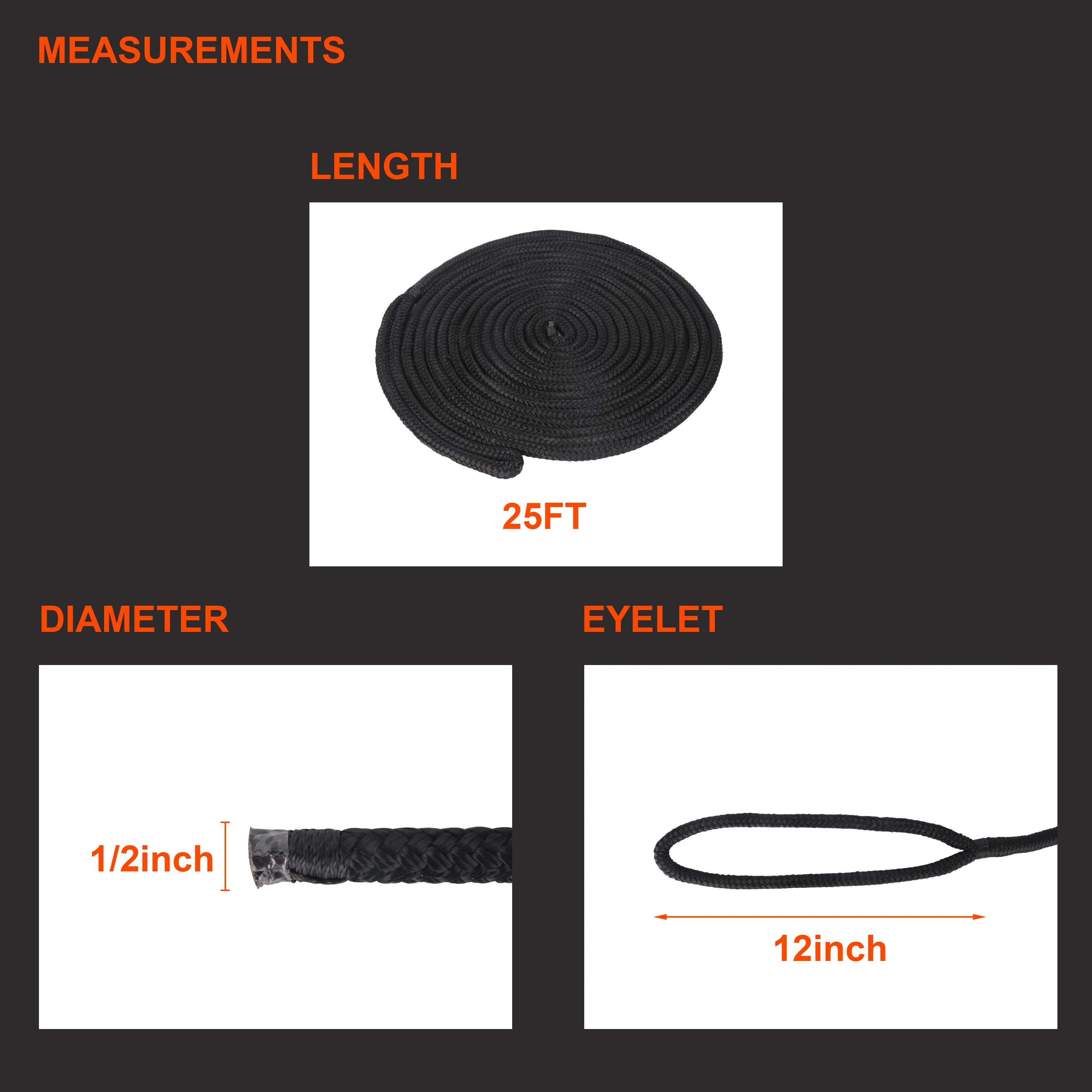 Двойной плетеный нейлоновый швартовочный канат DockLine, длина 16,5-50 футов, черный, сверхпрочный причальный Канат