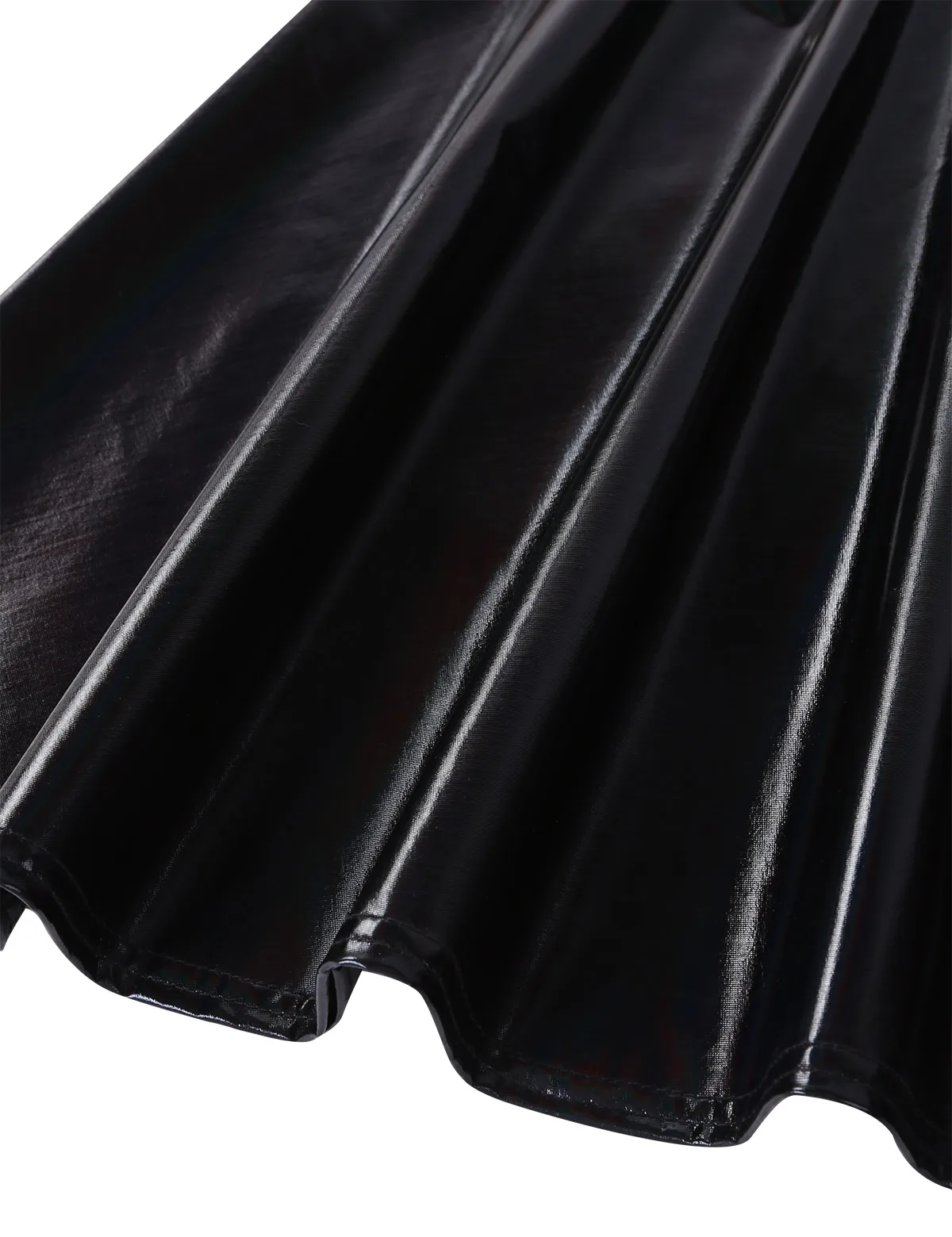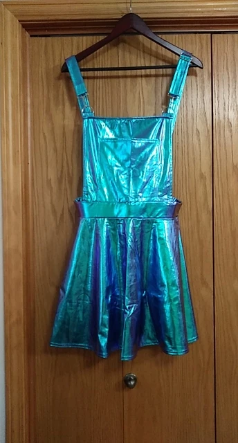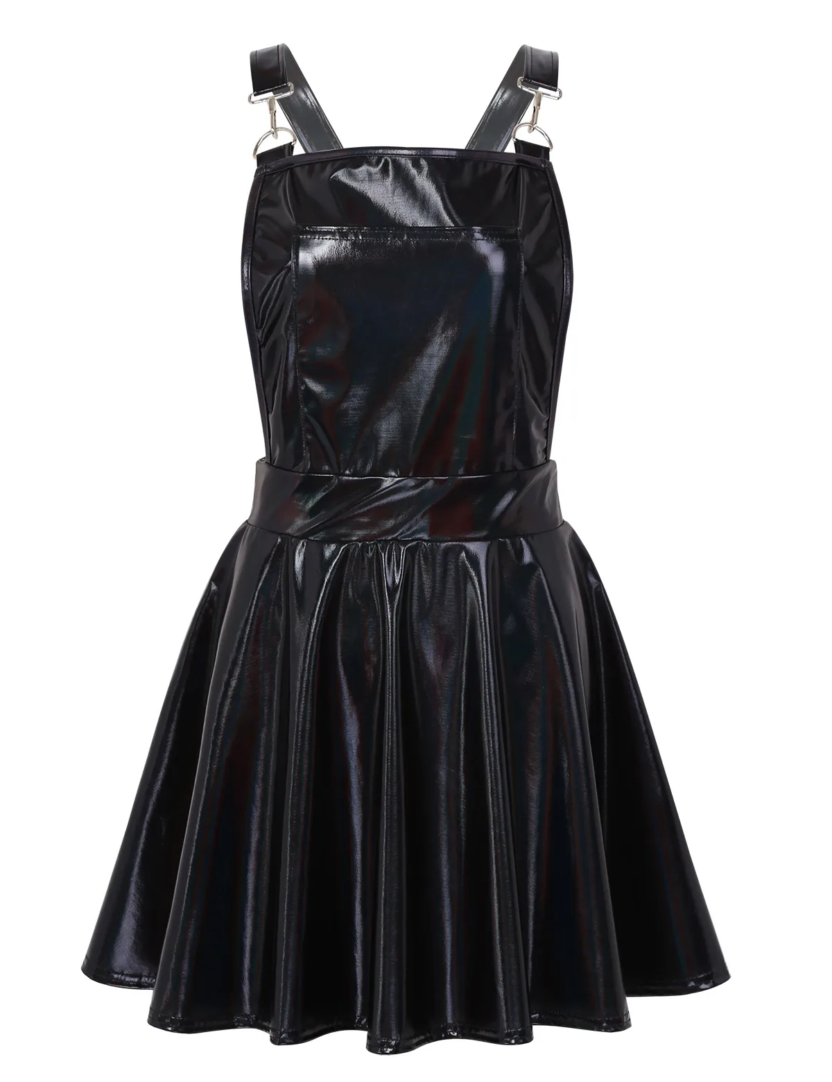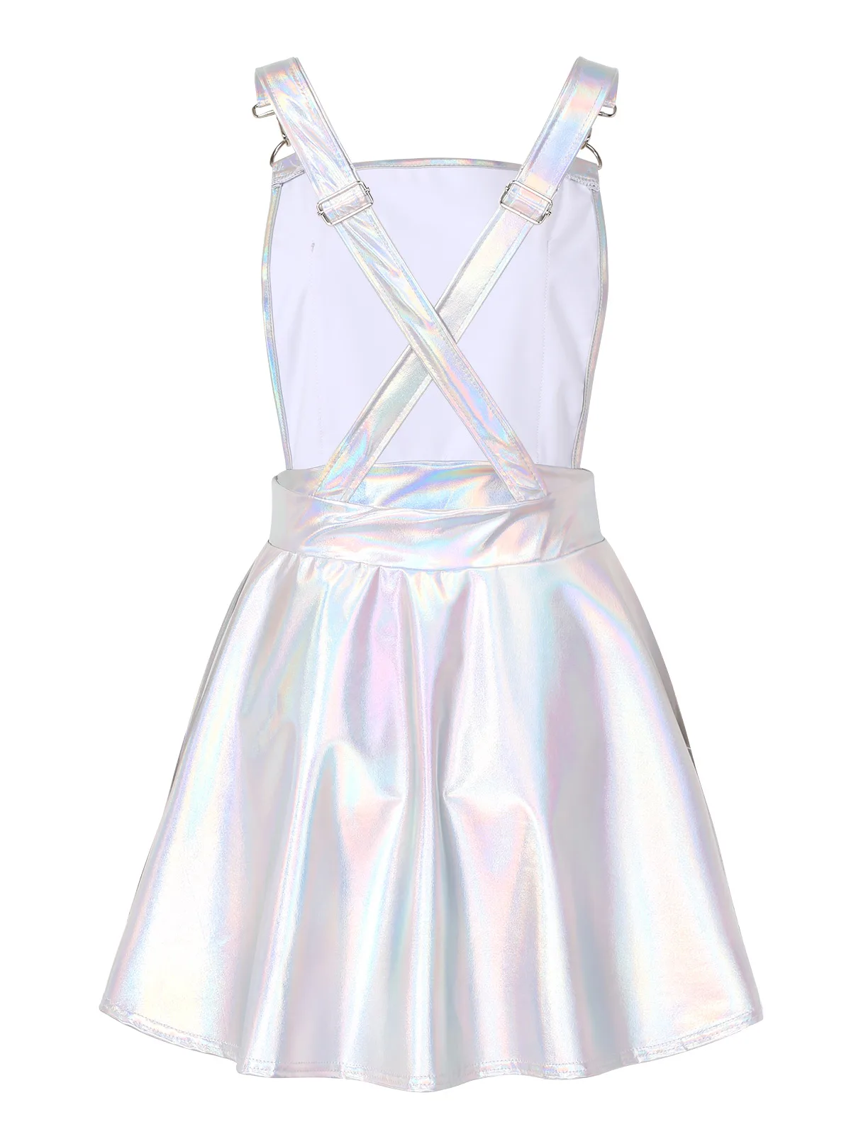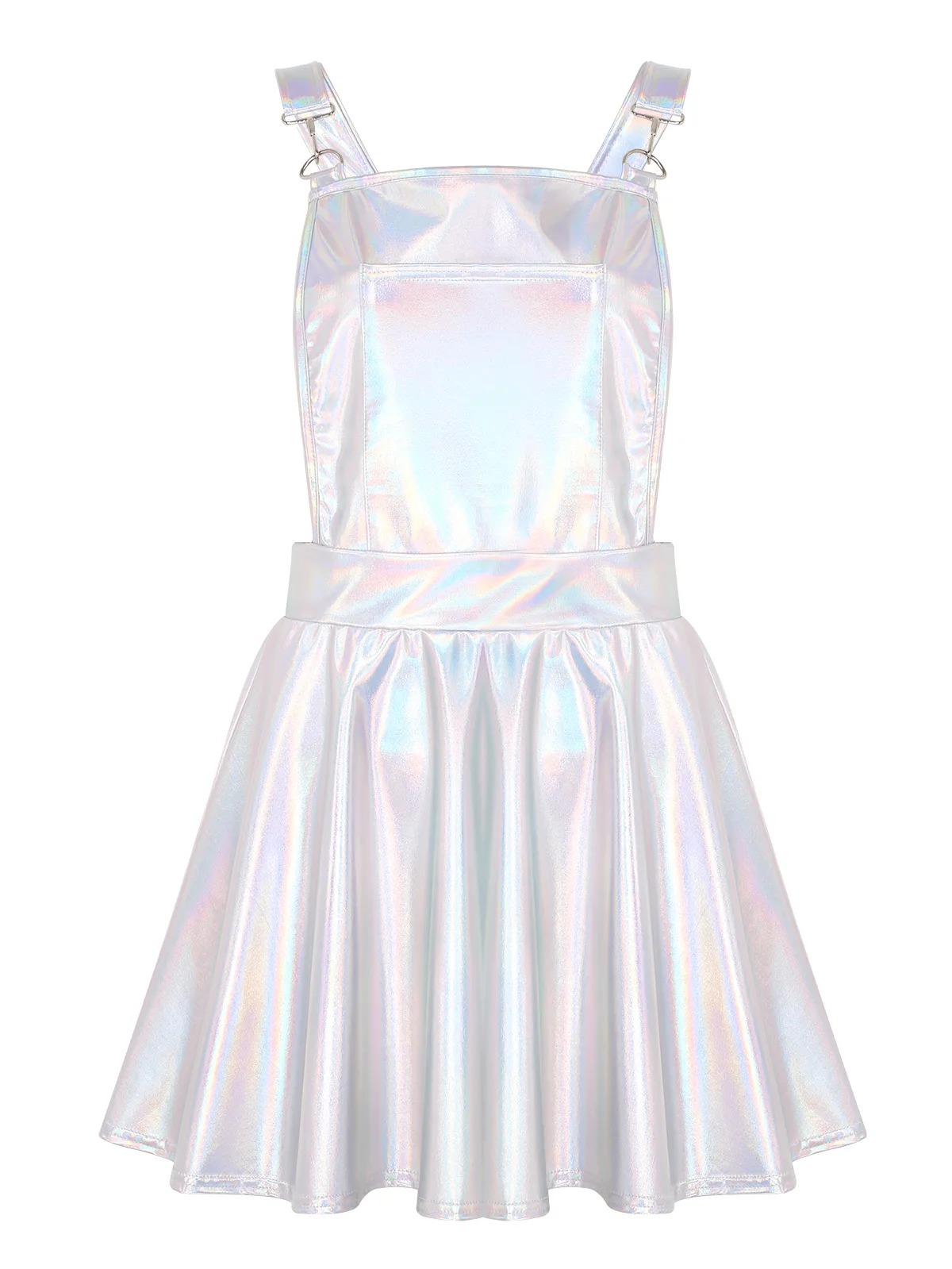 Женский Блестящий Комбинезон с металлическим нагрудником, платье с подтяжками, юбка мини подвязки, застежка на пуговицах.