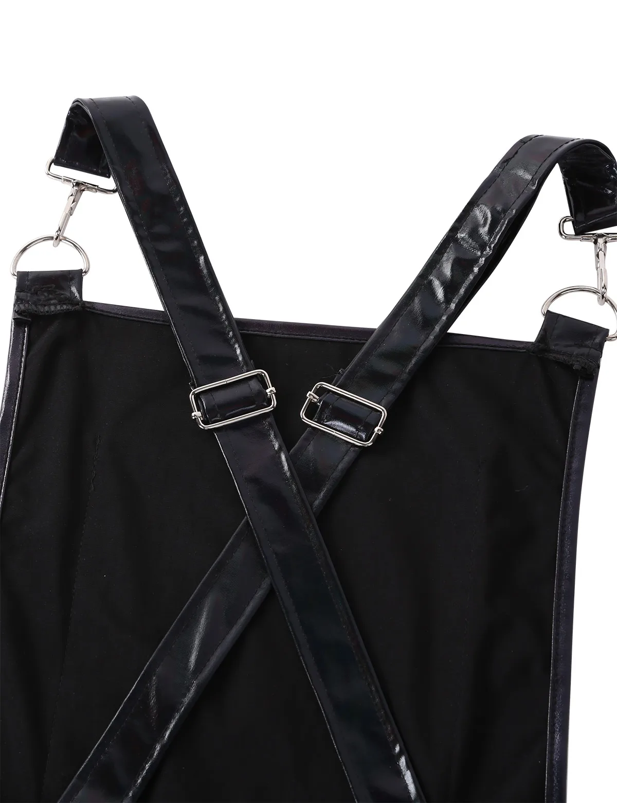 Женское блестящее платье iefiel в стиле панк, блестящее платье с металлическим эффектом, костюм для трансвеститов, комбинезон с подтяжками, ТРАПЕЦИЕВИДНОЕ короткое плиссированное платье