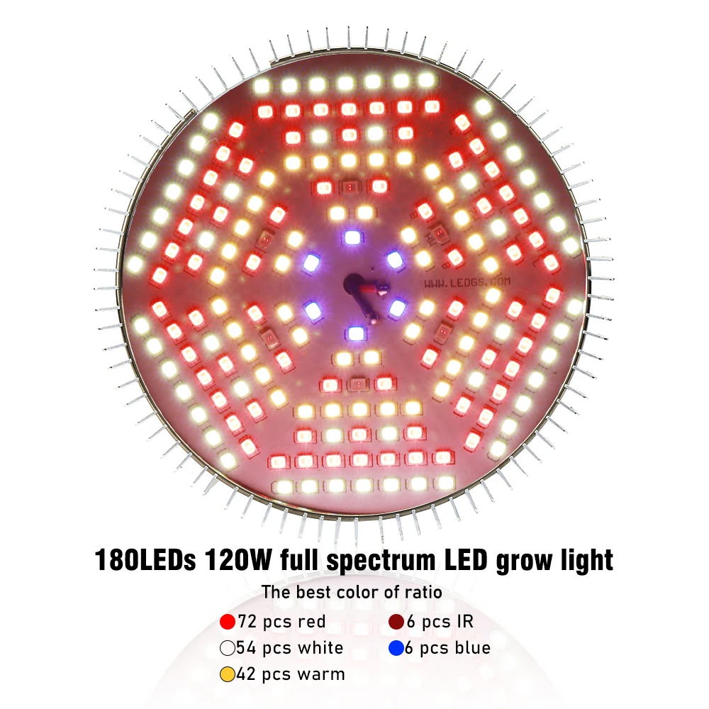 Светодиодная лампа для выращивания растений, E27, 120 Вт, 180 свето...