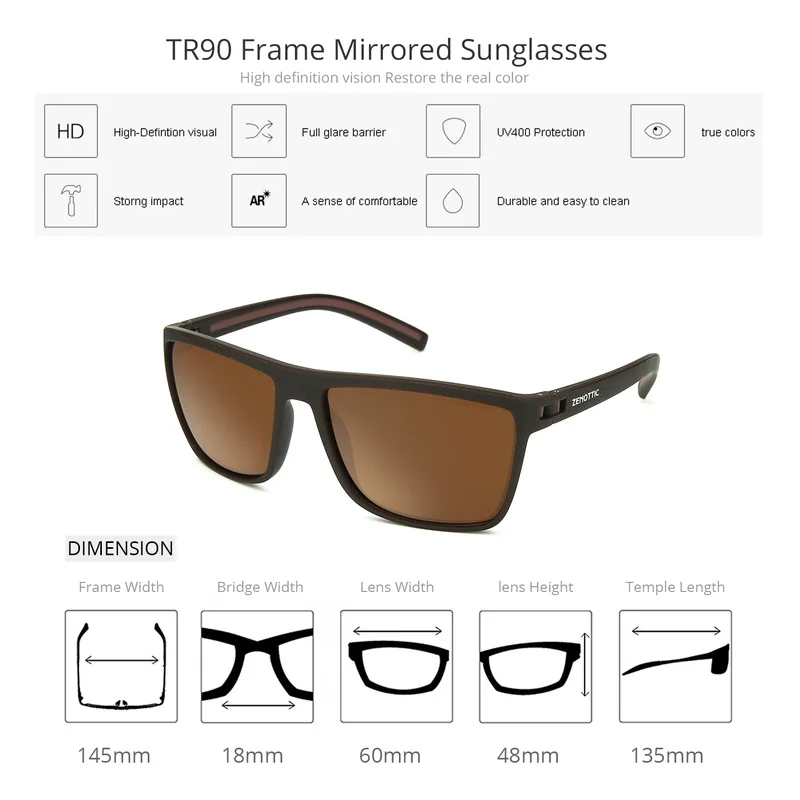 Солнцезащитные очки ZENOTTIC TR90 мужские, поляризационные квадратные спортивные очки для вождения с защитой UV400, брендовые дизайнерские уличные дорожные солнечные очки