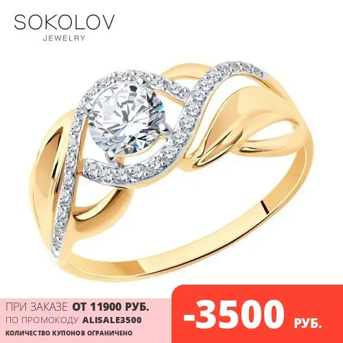 Кольцо SOKOLOV из золота с фианитами, Золото, 585, Женское, Оригина...