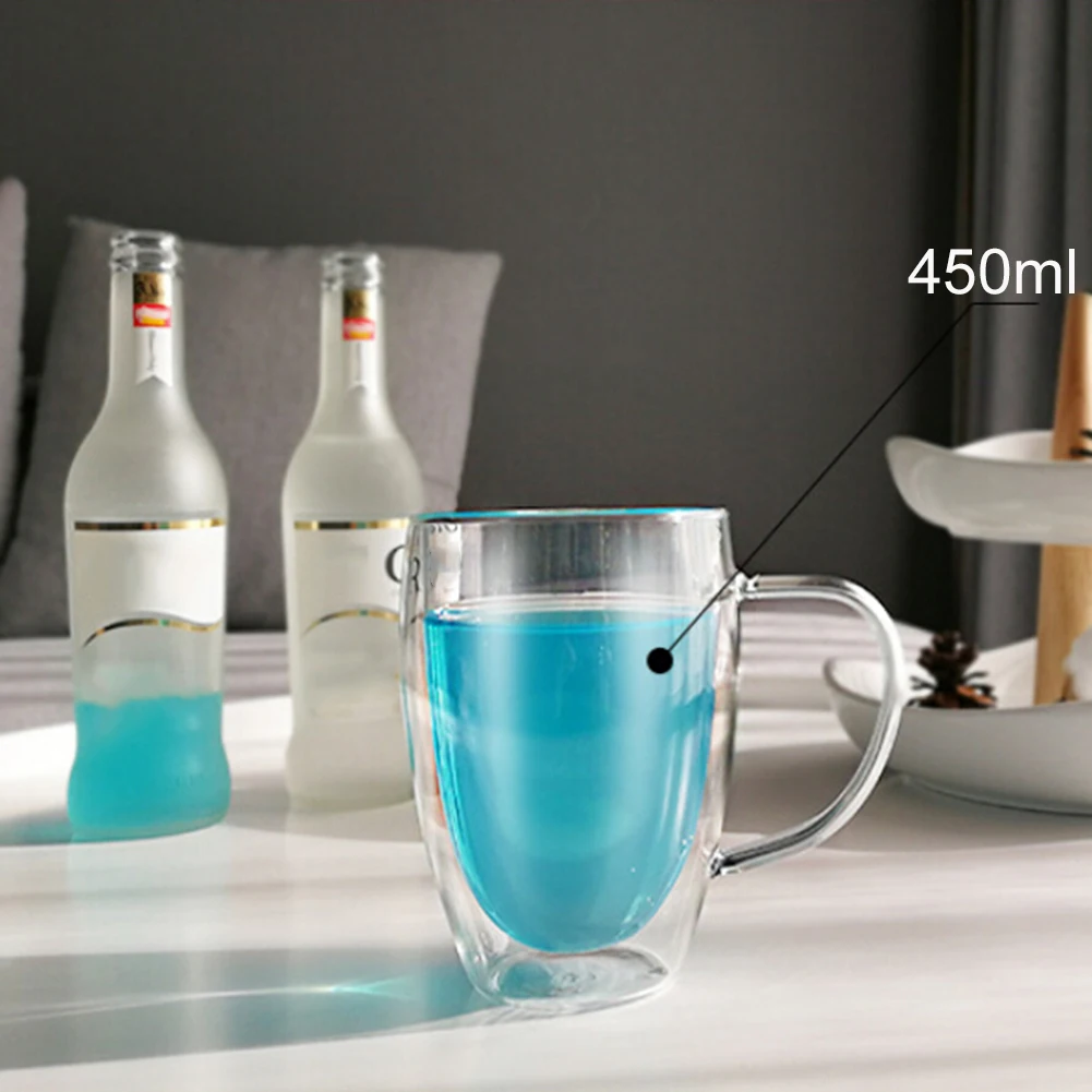 Новинка, двухслойная стеклянная чашка 250350450 мл с ручкой, термостойкая стеклянная чашка, чашка для кофе, чая, вина, посуда для напитков