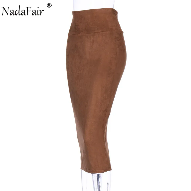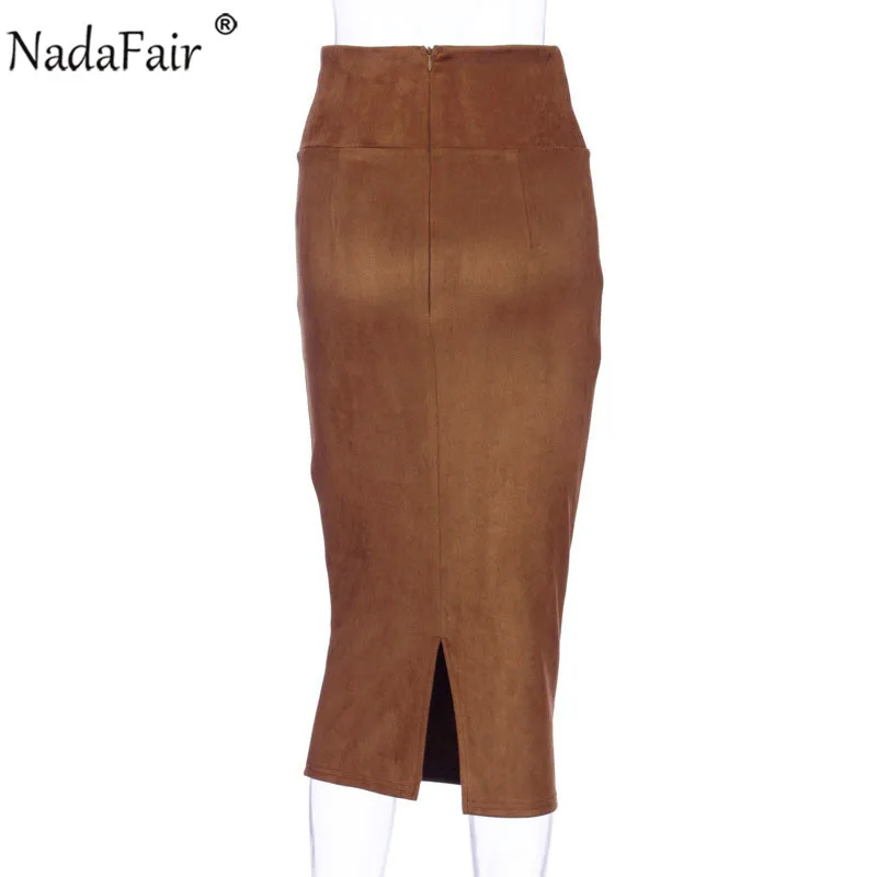 Вечерние облегающие длинные юбки Nadafair с высокой талией, Женская облегающая юбка-карандаш с разрезом сзади, сексуальная клубная Зимняя Юбка-миди