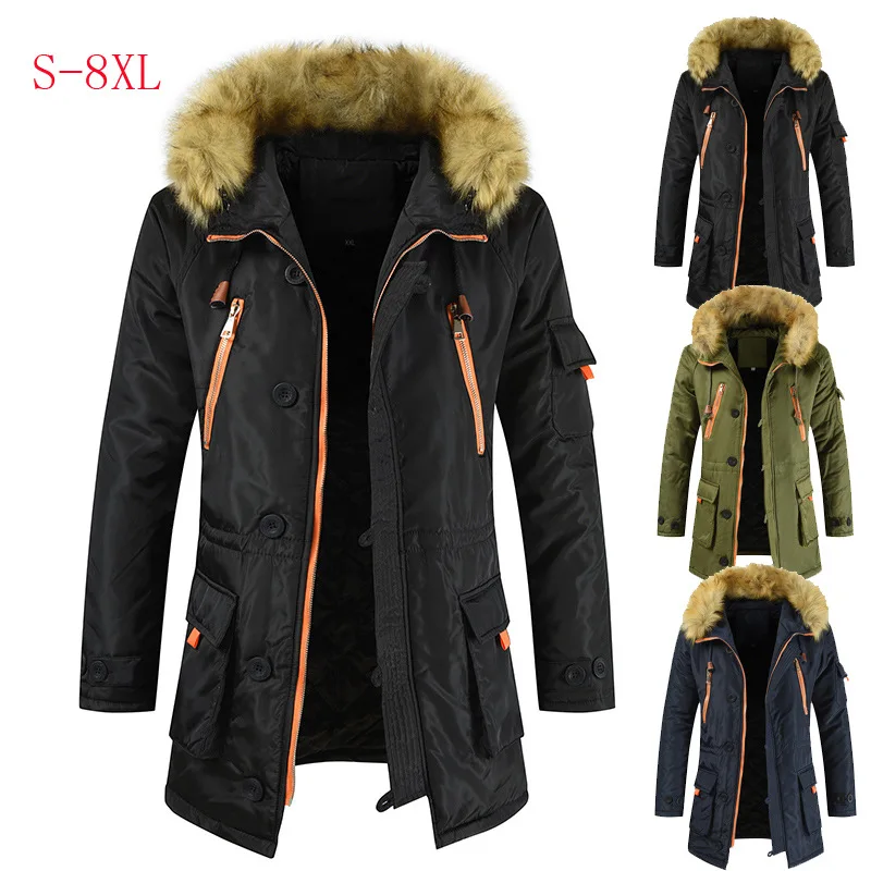 Теплая толстовка с капюшоном для мальчиков искусственный меховой воротник армейский зеленый пушистое пальто мужские зимние длинные парки больших размеров одежда для пар Шинель мужские 7xl 8xl