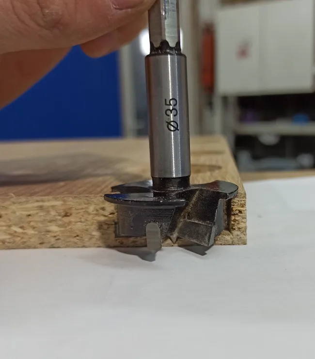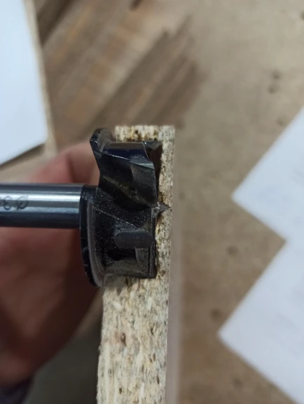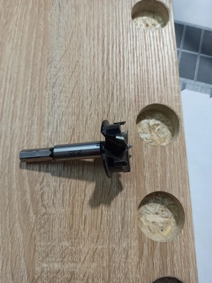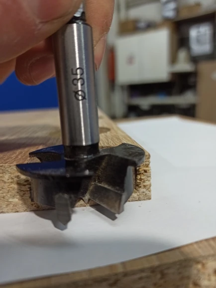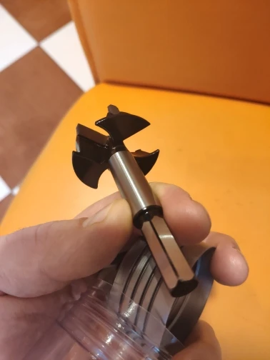 Фреза нормальная, но есть несколько особенностей за которые снизил оценку. Первое что нужно сделать это подточить центр фрезы т.к на 16мм фасад пробивает. При этом для петли Blum нехватает 0.5 мм глубины. Пришлось добивать другой фрезой т.к у этой юбка и глубже она не пробьёт. И третий минус очень плохо выберет мдф из-за конструктивной особенности. Лдсп бьёт отлично. Если редко пользуетесь петлями Blum то можно брать. Петли других производителей встают на ура.