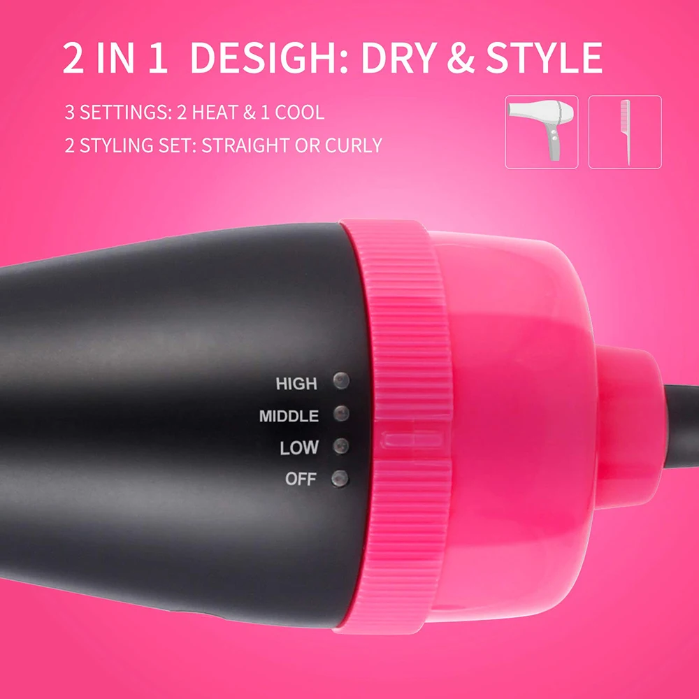 Фен и щетка для придания объема 3-в-1 с отрицательными ионами