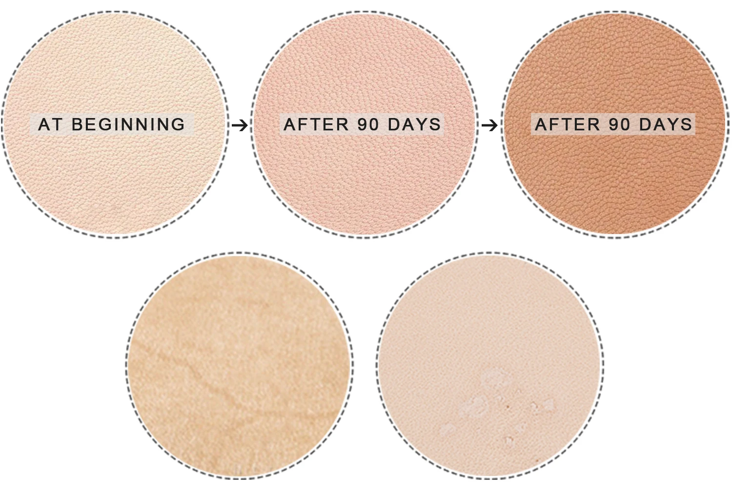 Кожа растительного дубления:Он изготовлен из верхнего слоя воловьей кожи, который использует процесс растительного дубления. После загара и отжимания, это сложнее, и структура кожаного волокна компактна. Выглядит блестящим, но нежирным. После периода использования, цвет будет отличаться от представленного светильник розового до светильник коричневого цвета. Но если вы правильно сохраните его с маслом для кормления, он будет более красивым.