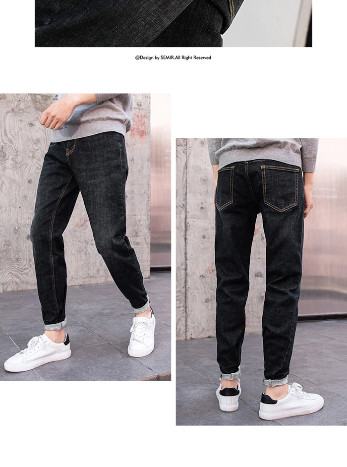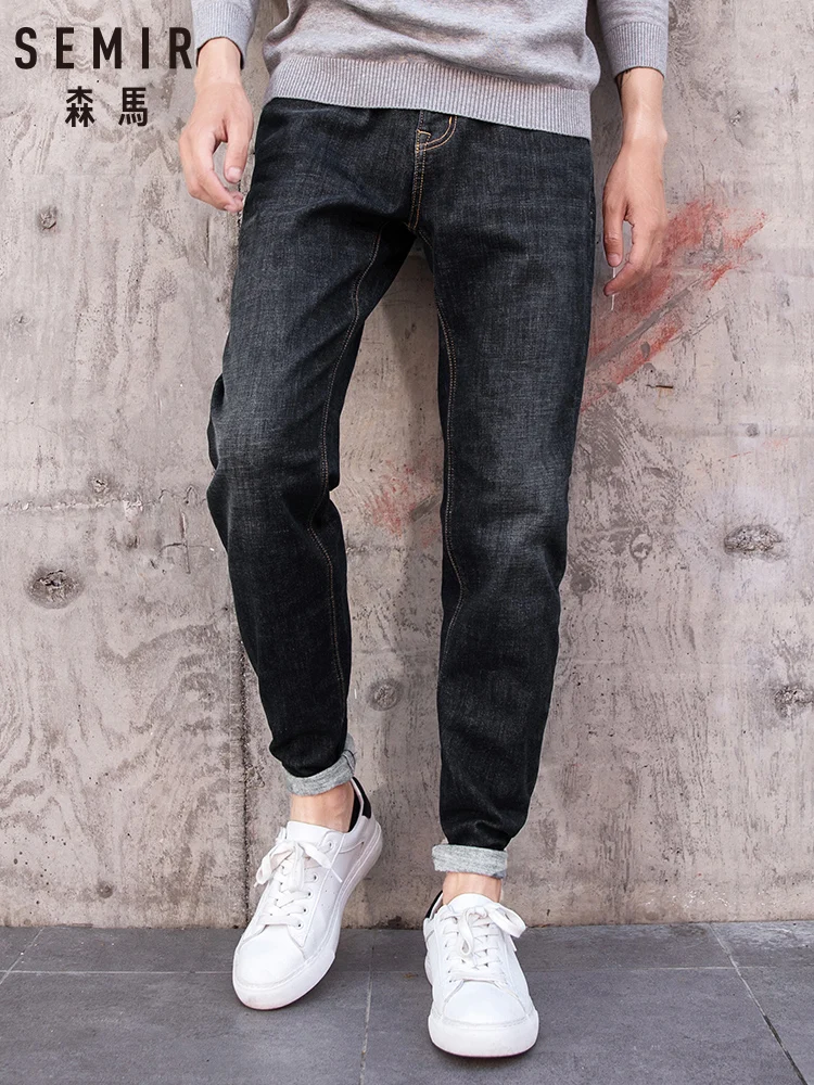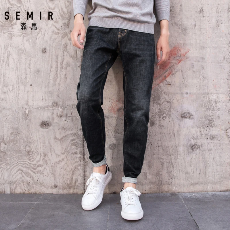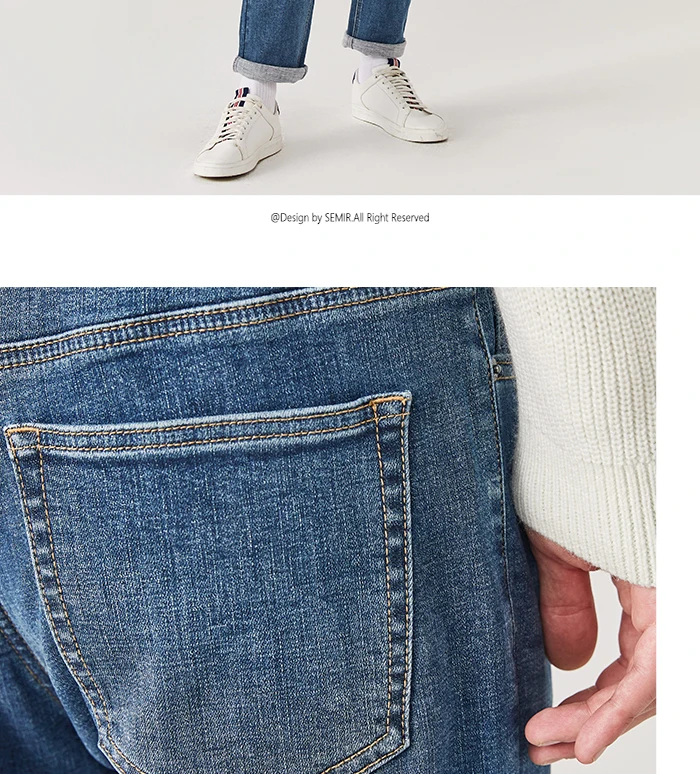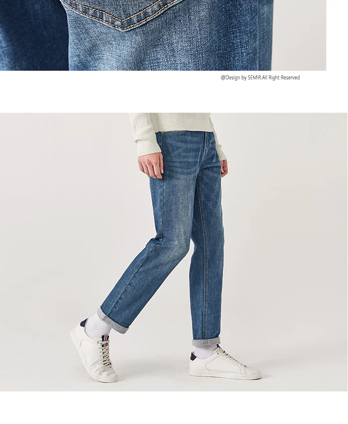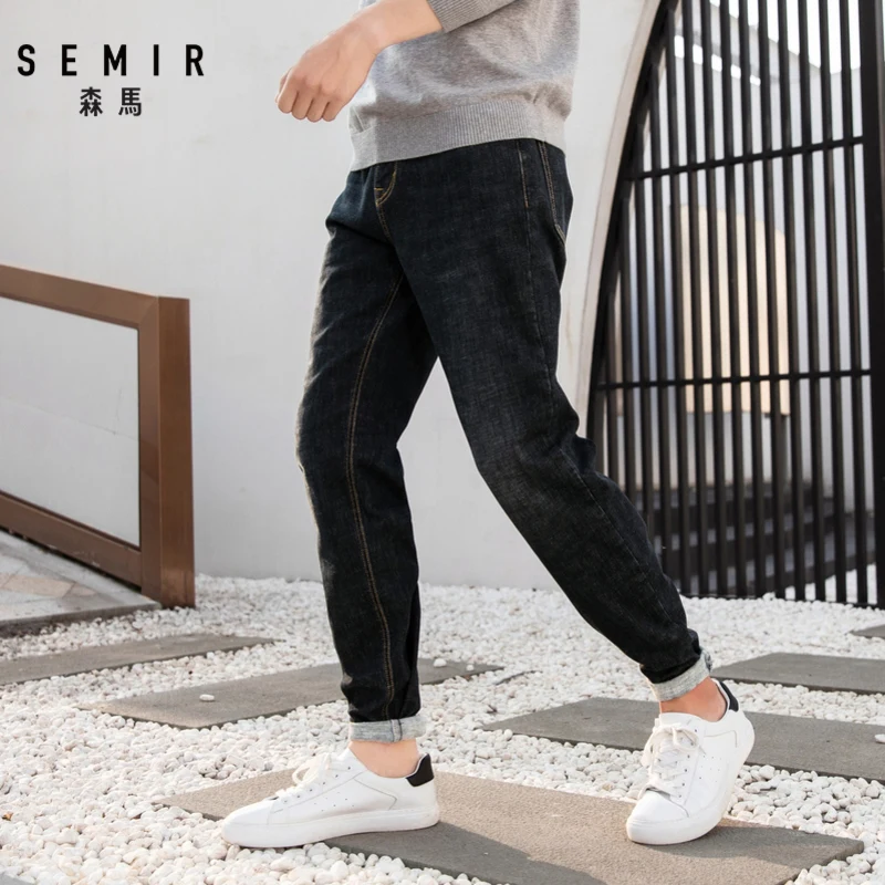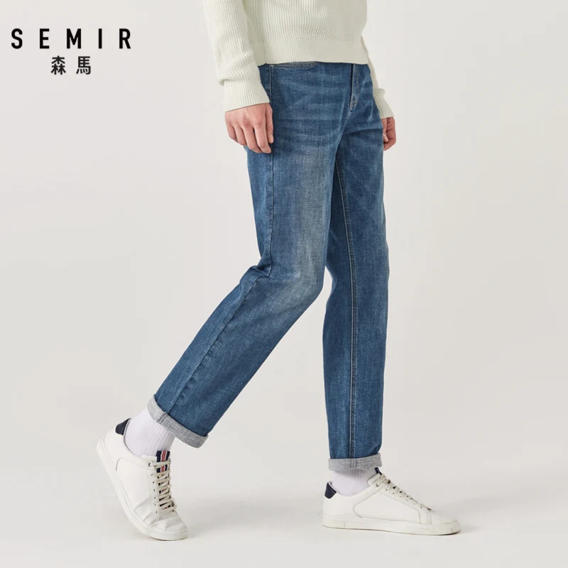 Джинсы SEMIR мужские прямые зауженные, Брендовые брюки из денима, деловой Повседневный стиль, темно-синие