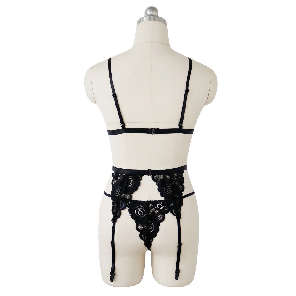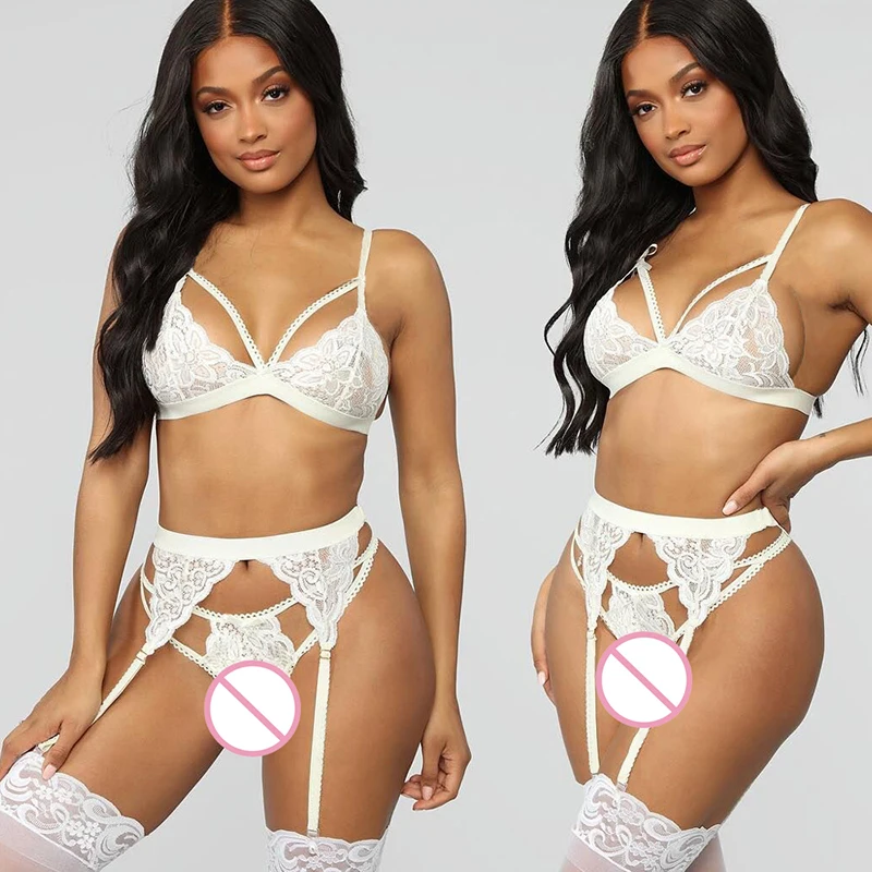 Сексуальное женское кружевное нижнее белье из трех частей, костюм б...