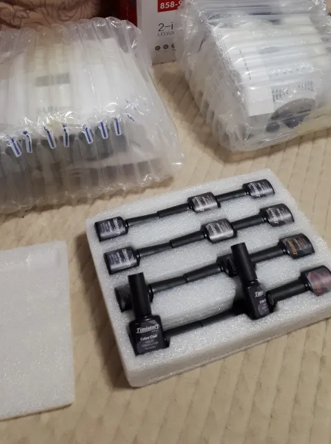 товар пришёл быстро все работает и исправно. упаковано отлично. только по дороге один флакон с лаком разлился, была плохо закручена крышка