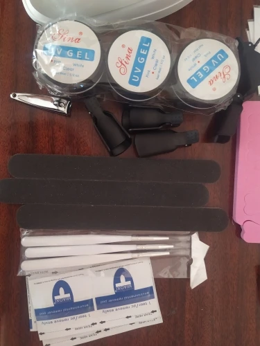Заказ пришел быстро, доставили по адресу. Вчера проводила испытания маникюром. Машинка и лампа работают хорошо. В наборе есть все необходимое для маникюра. Качество геля и лаков плохое, но для начинающих сойдет. Товаром довольна