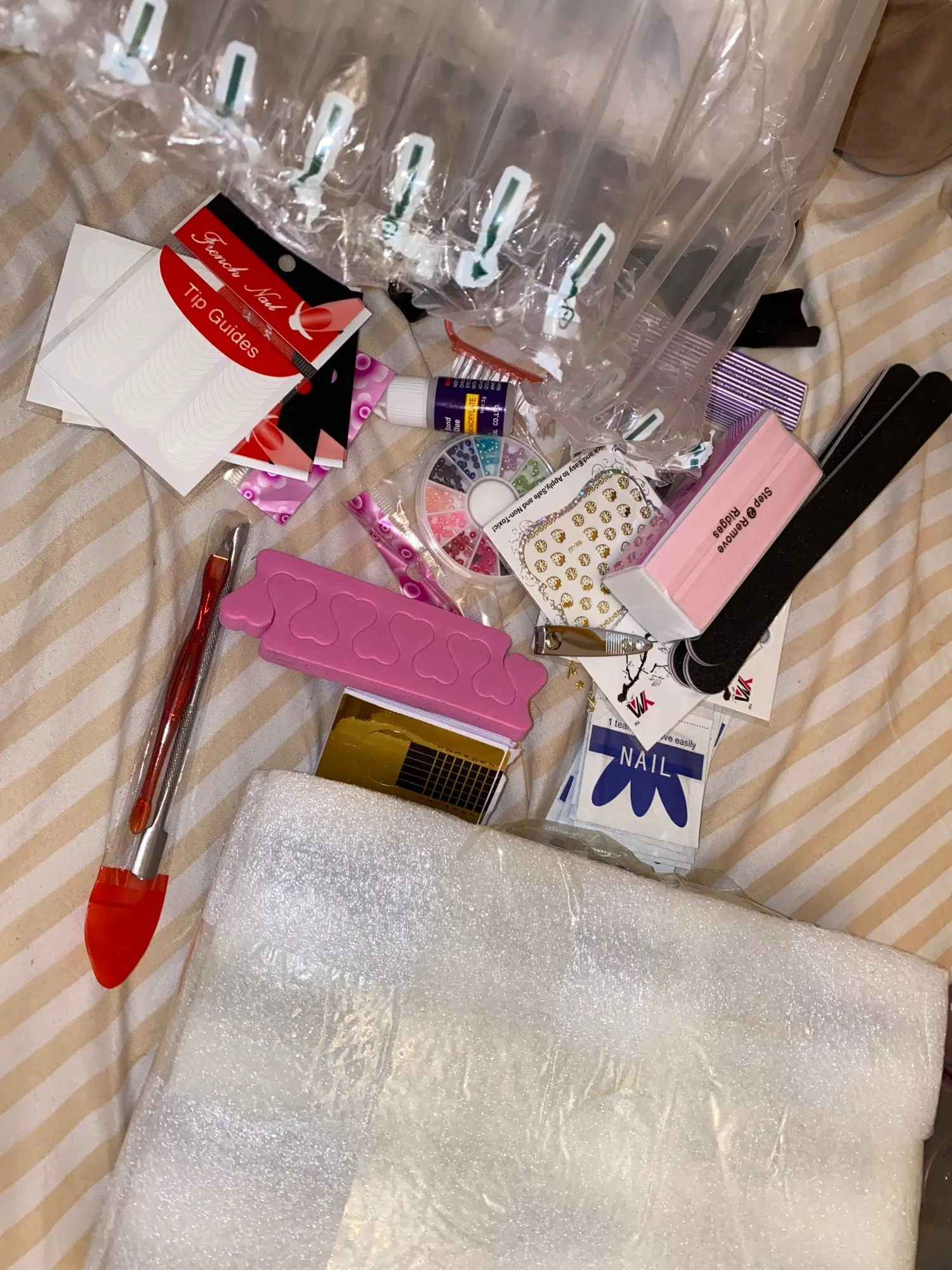 Хороший набор ,есть все для наращивания ноготков,гели ещё не пробовали в работе . Лампа и машинка работают !!Заказ дошёл за месяц .