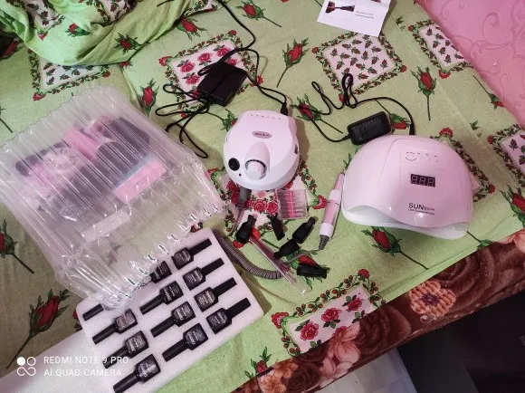 ну что можно сказать... в целом все хорошо, но имеются минусы! опишу подробнее может кому то будет полезен мой отзыв. сначала о минусах: - доставка, при очень быстрой доставке 5 дней, все же они были((( CDEK должны были доставить на дом, не дождалась, они выдумали байку что не смогли дозвониться, пришлось ехать к ним и забирать, УЖАСНАЯ доставка!!! хорошо что удалось договориться чтоб обратно продавцу посылку не отправили! - лампа, пришла треснутая и три диода не горели((( связались с продавцом, фото/видео приложили, пока он думал, перестали гореть еще три диода, открыли спор, деньги вернули, за что огромное спасибо, лампу купим новую. плюсы: - аппарат для маникюра, очень понравился, хоть по началу не внушает доверия(очень легкий), но уже 10 процедур сделано, ни разу не подвел - набор большой, имеется все что нужно как для простого маникюра, так и для наращивания/ покраски ногтей, цвета лаков классные, все разные, по качеству не очень, но для начинающих это даже хорошо, чаще тре