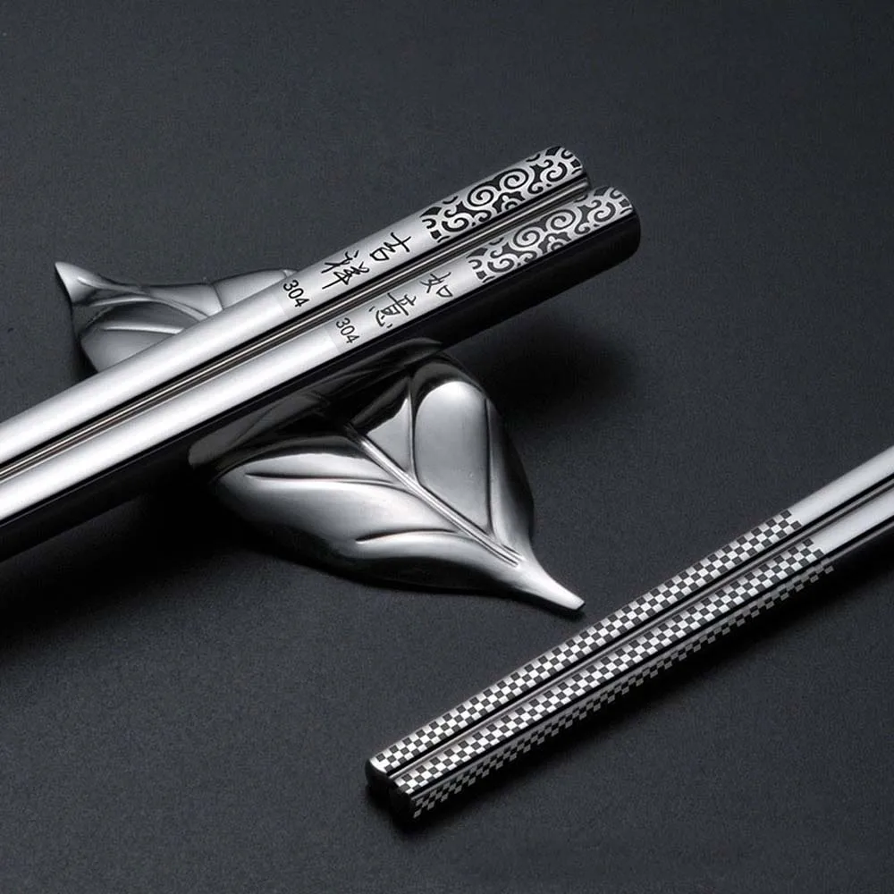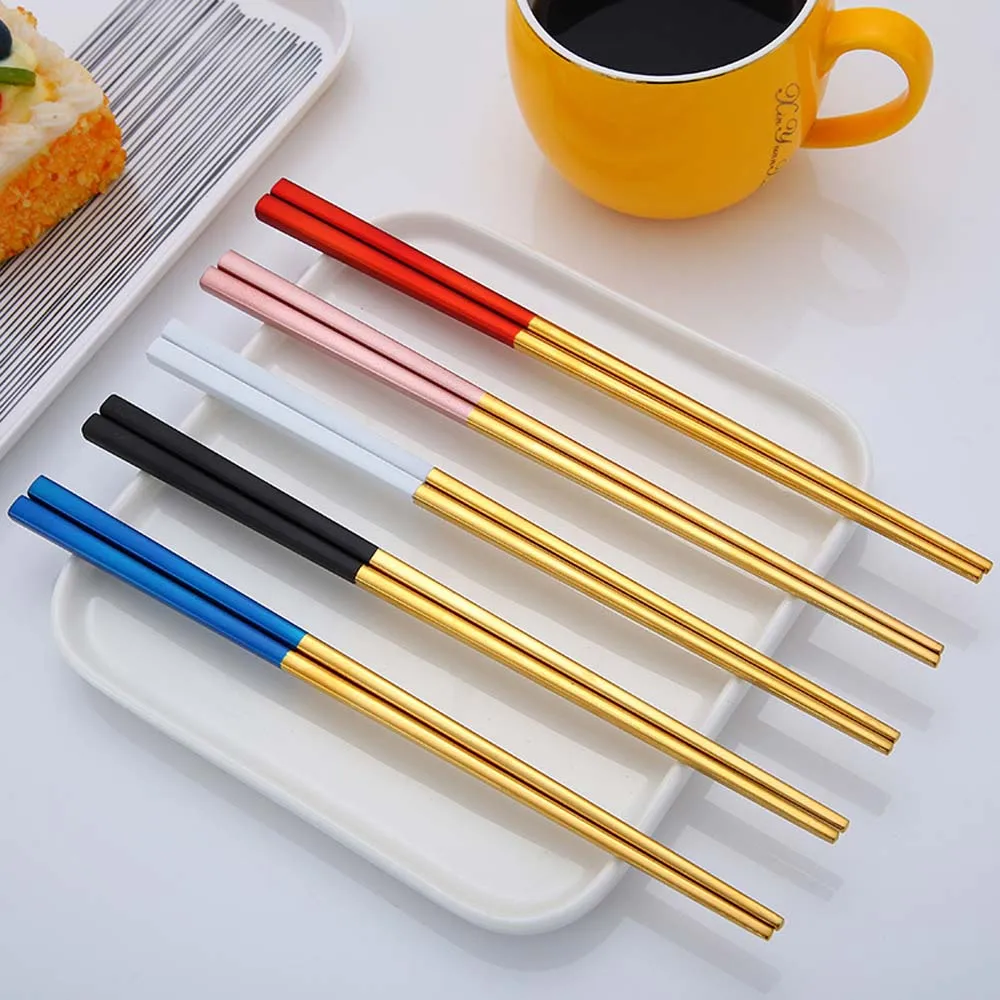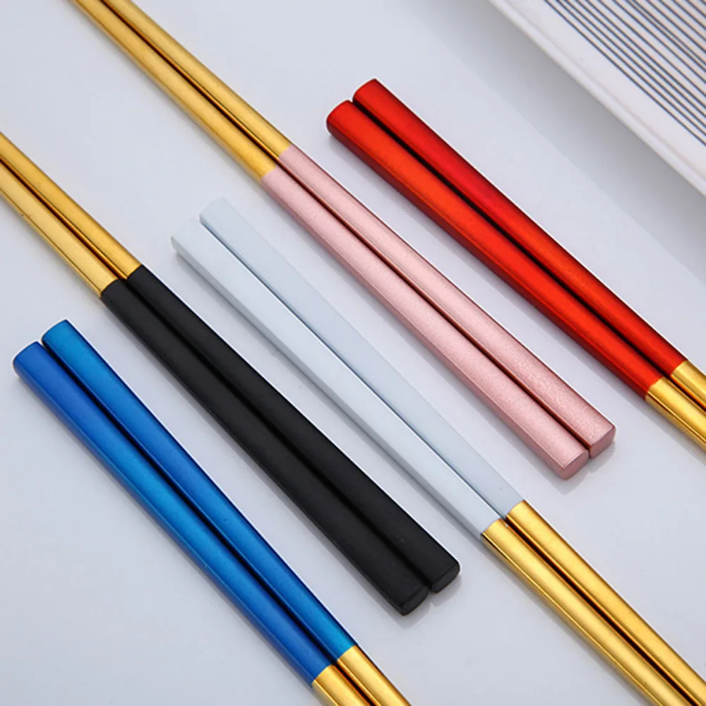 1 пара цветных палочек для еды из нержавеющей стали, символ удачи китайская палочка для еды, лазерная Нескользящая полая кухонная посуда